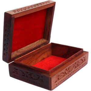 Woodino Carving Elephant Embossed Wooden Jewelry Box (6x4 Inch)