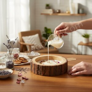 Woodino Wooden Logs Candle Wax Holder (5 Inch Dia, 2 Inch Height) – Unique Wax Jar for DIY Candle Making