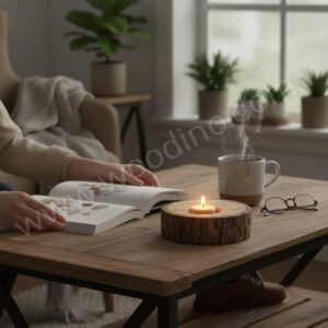Woodino Wooden Logs Tea Light Holder (5 Inch Dia, 1.5 Inch Height) – Unique Wooden Candle Holder for Tea Light Candles