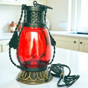 Glass Table Lamp – Antique Red Design Night Lamp for Home & Bedroom Décor | Ethnic Handmade Lantern Light