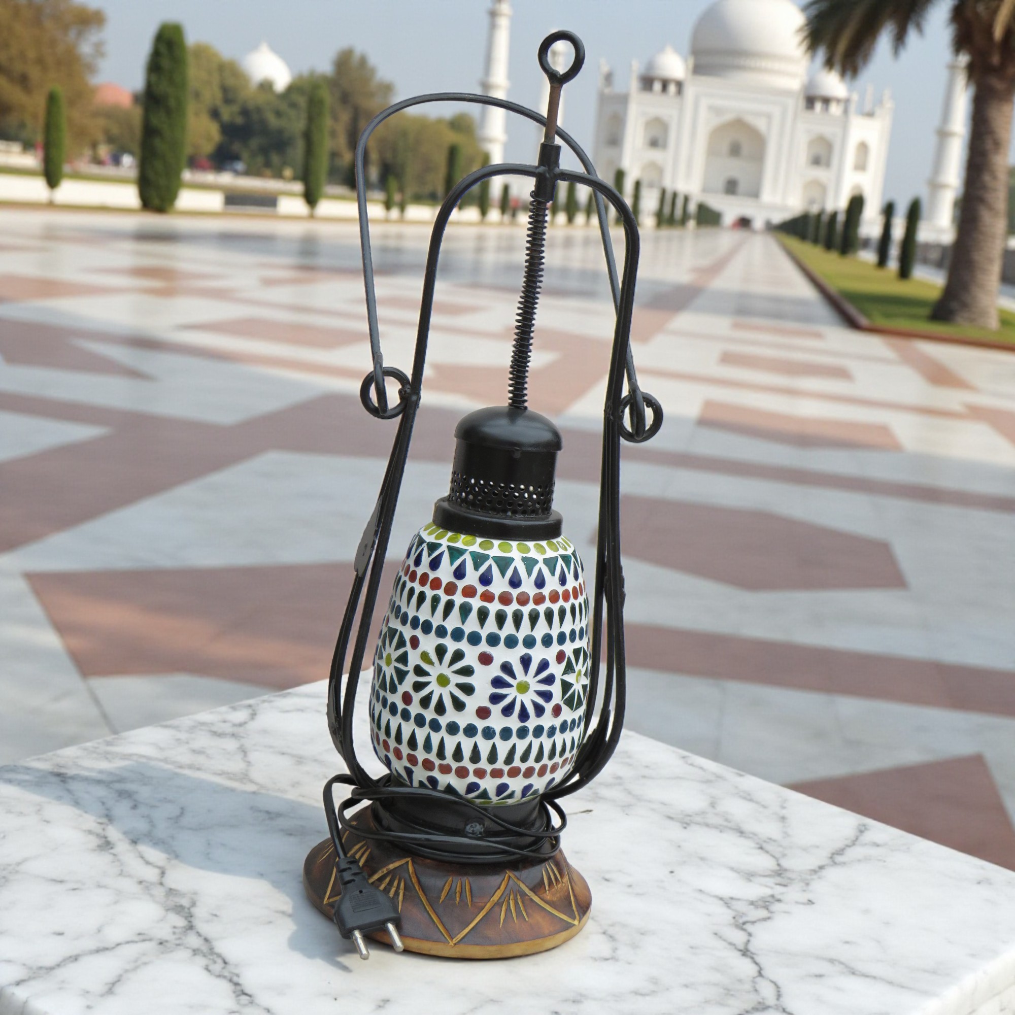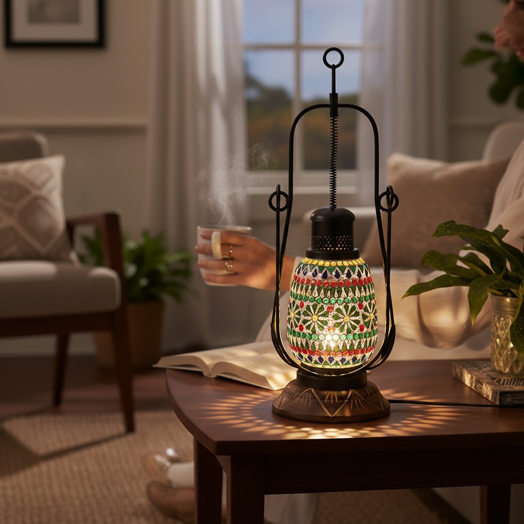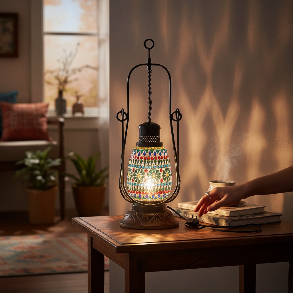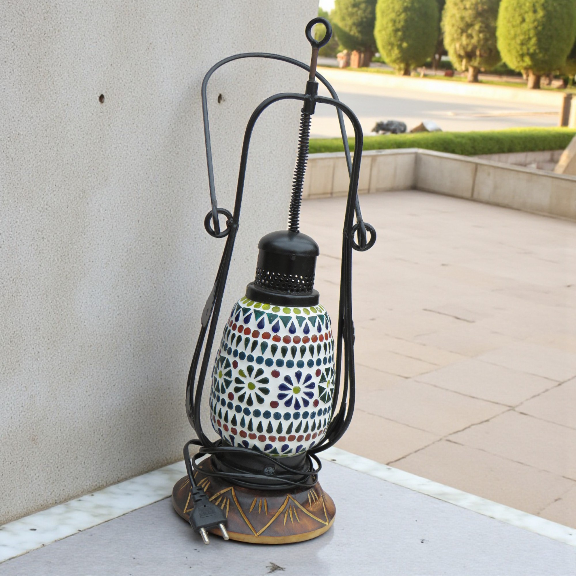 Perfect for adding an ethnic touch to your bedroom, living room, or study, the lamp casts a soft, multicolor glow that enhances any corner of your home. Designed for electric use, it’s ready to plug in and brighten your space instantly.