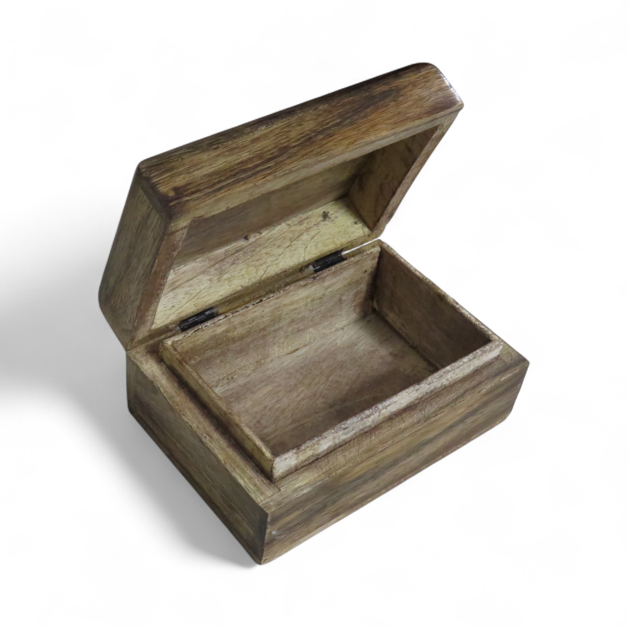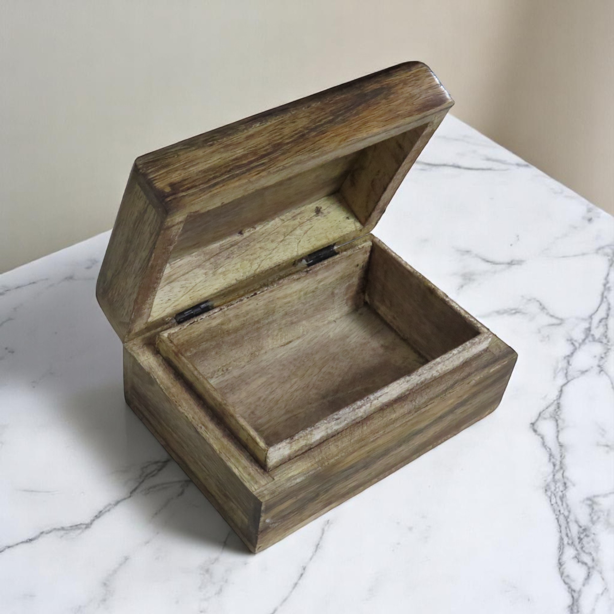 This decorative wooden box is versatile and can be used to store jewellery, small essentials, trinkets, and keepsakes while adding a touch of charm to your dresser or home décor.