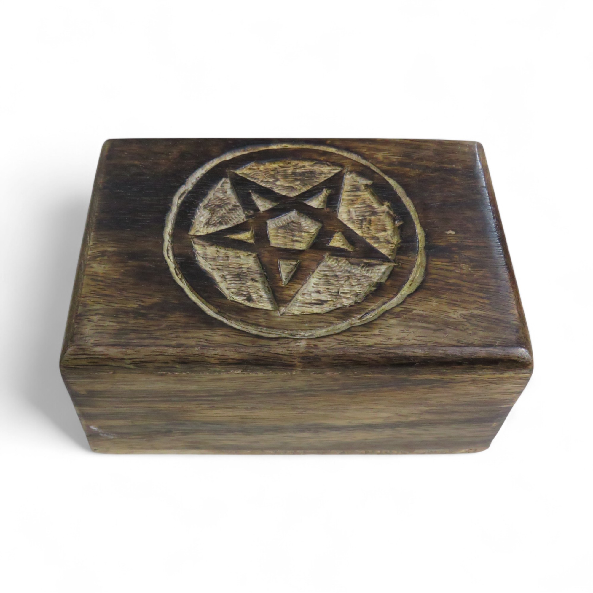 Elevate your storage with this Mango Wood Multipurpose Jewellery Box featuring intricate star carving work. Handcrafted by skilled artisans, it reflects timeless craftsmanship and utility.