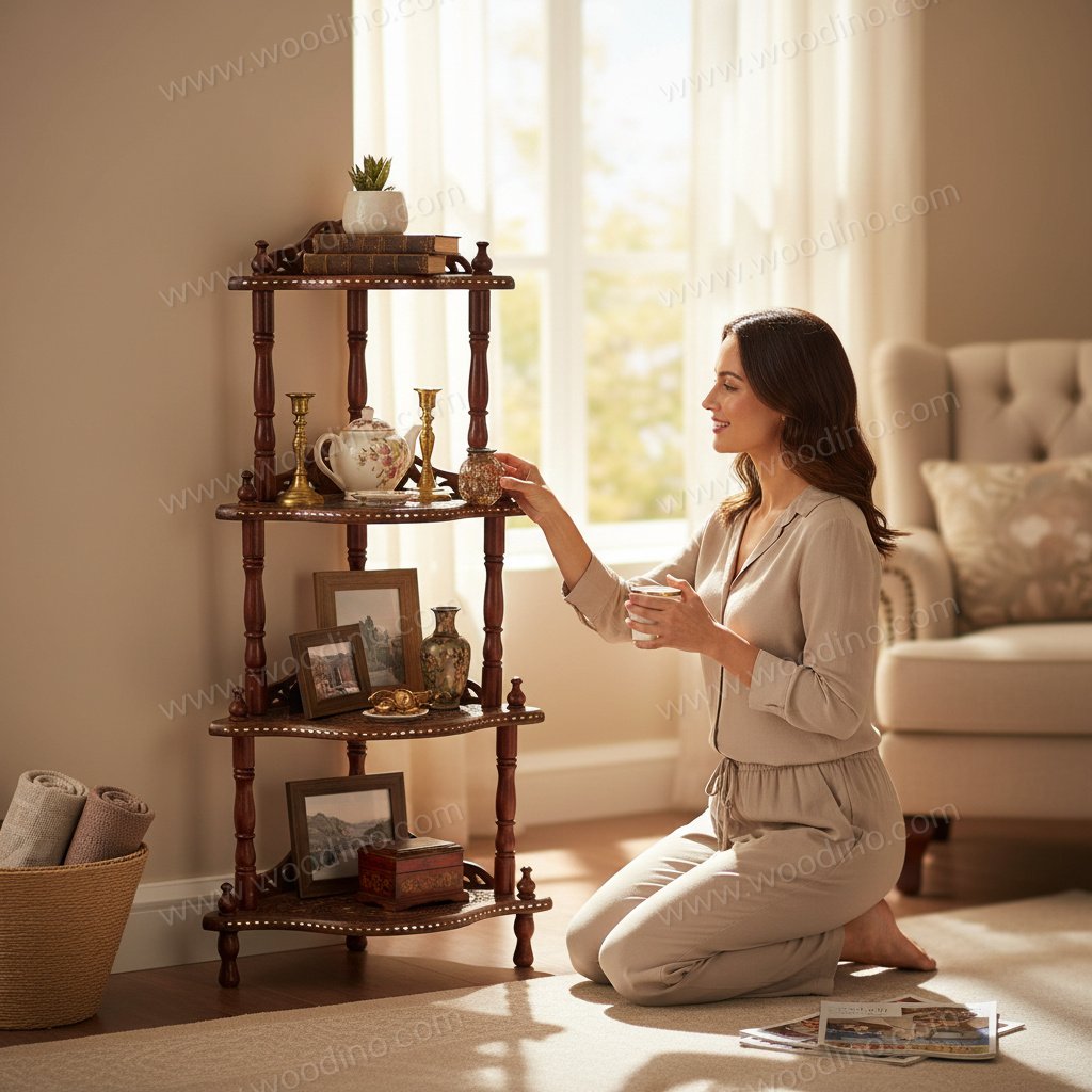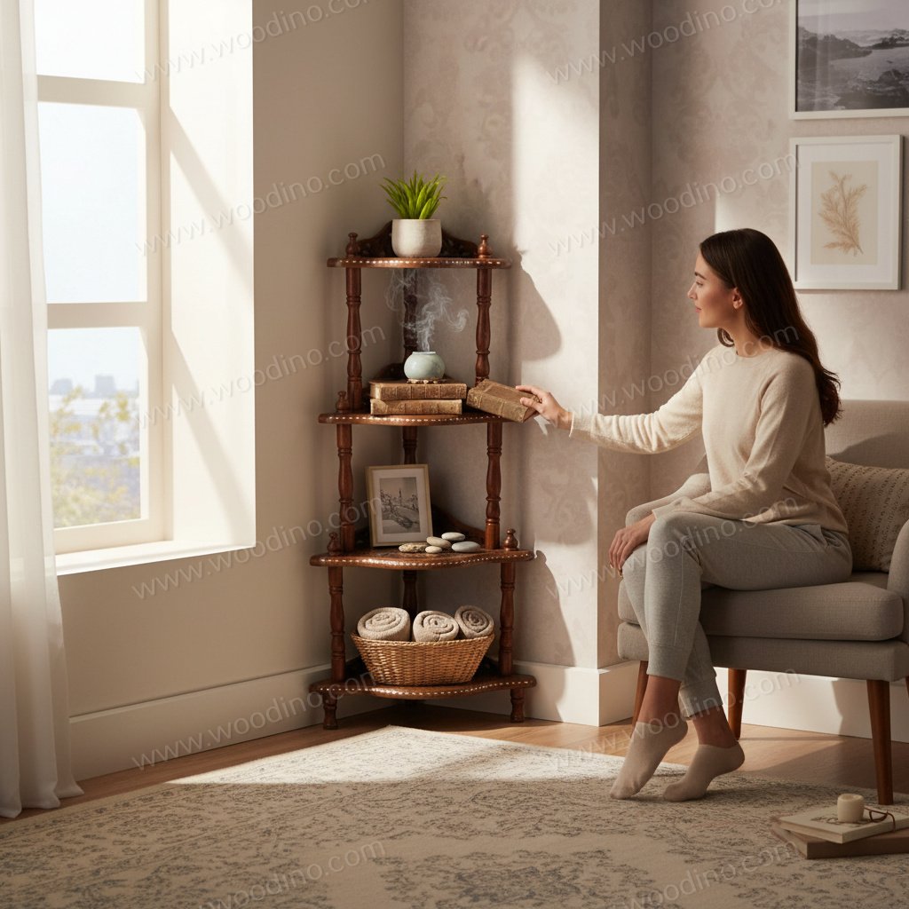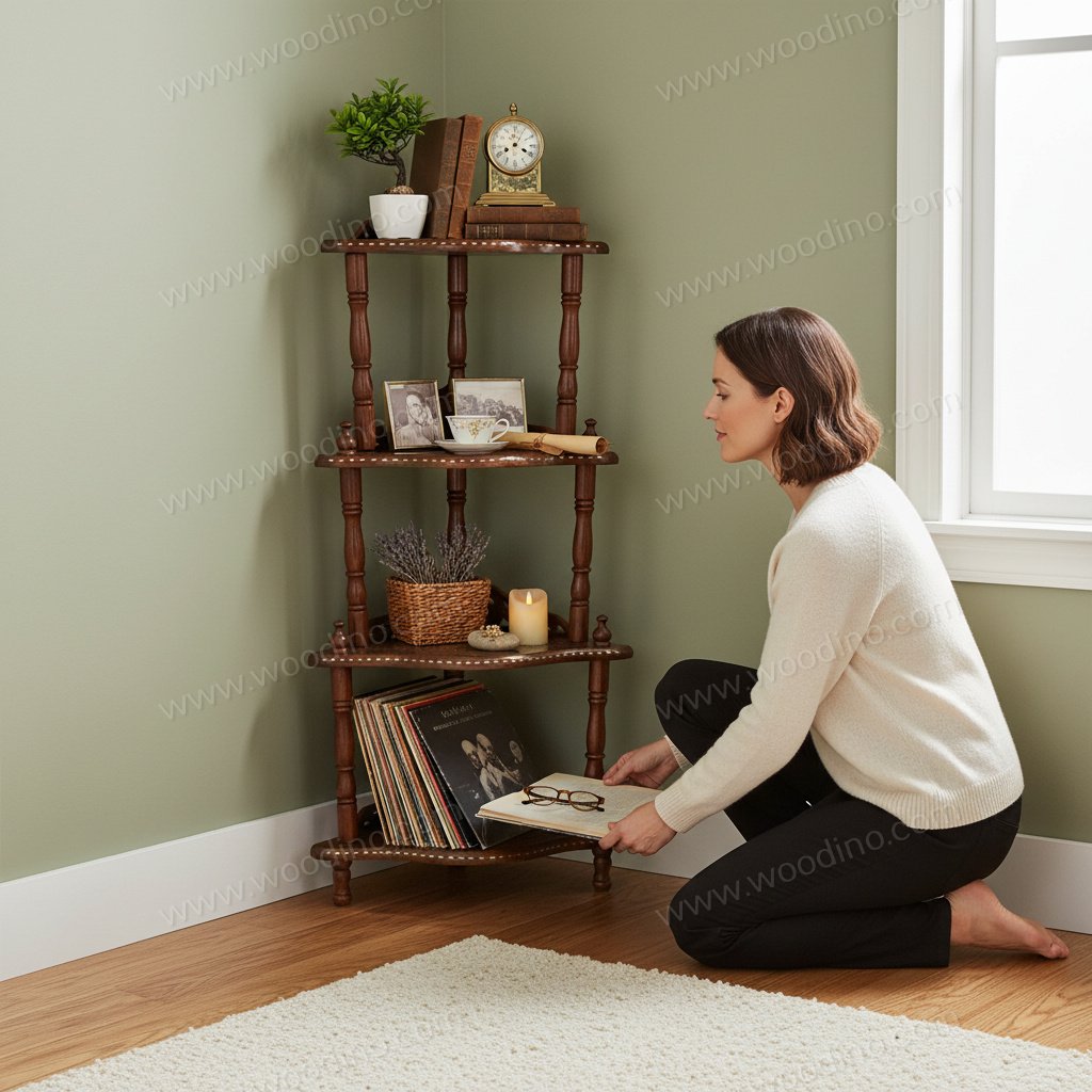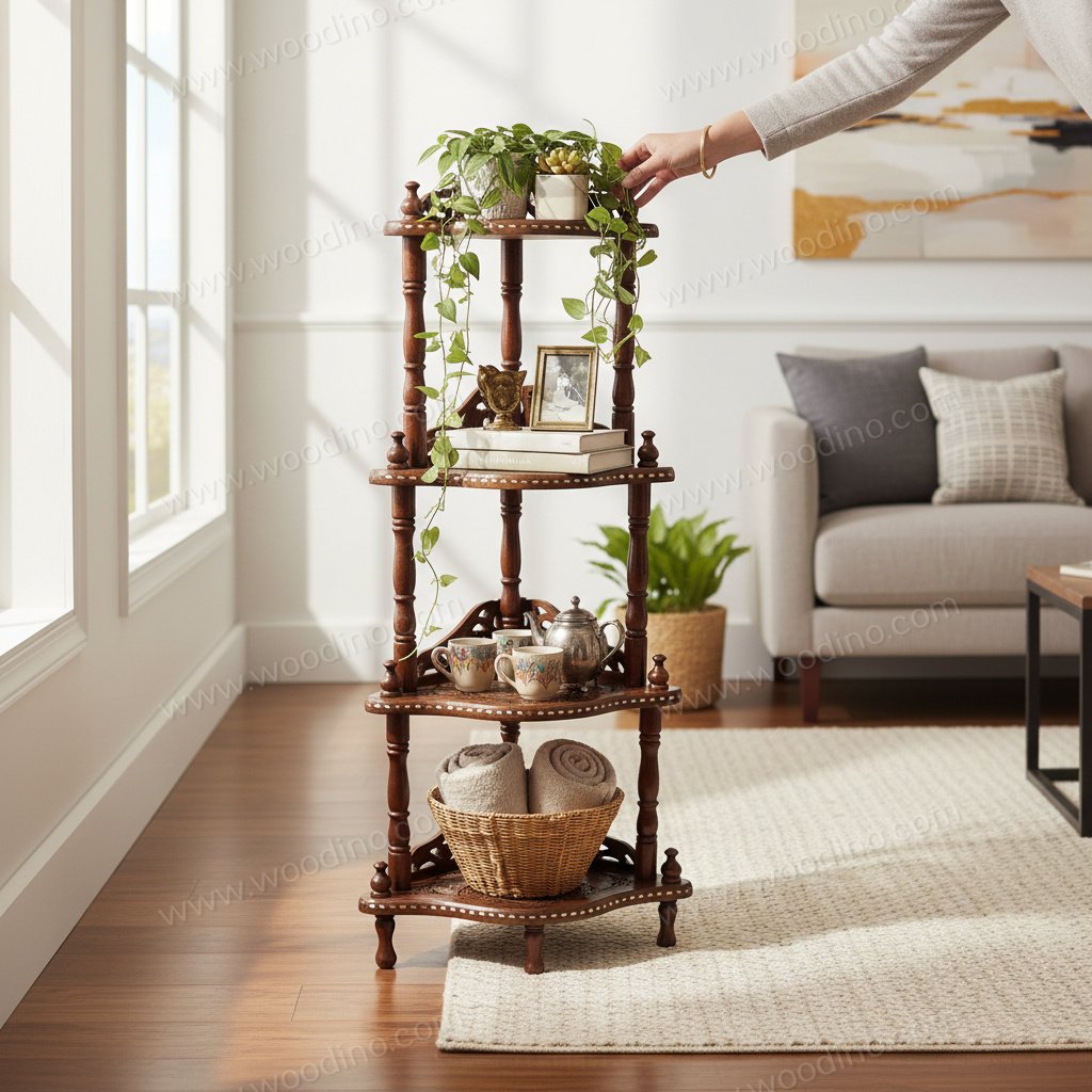 - 1 × Woodino Sheesham Wood 4-Shelf Folding Corner Stand
