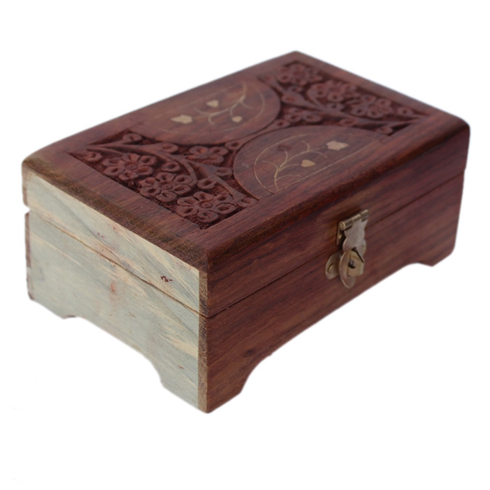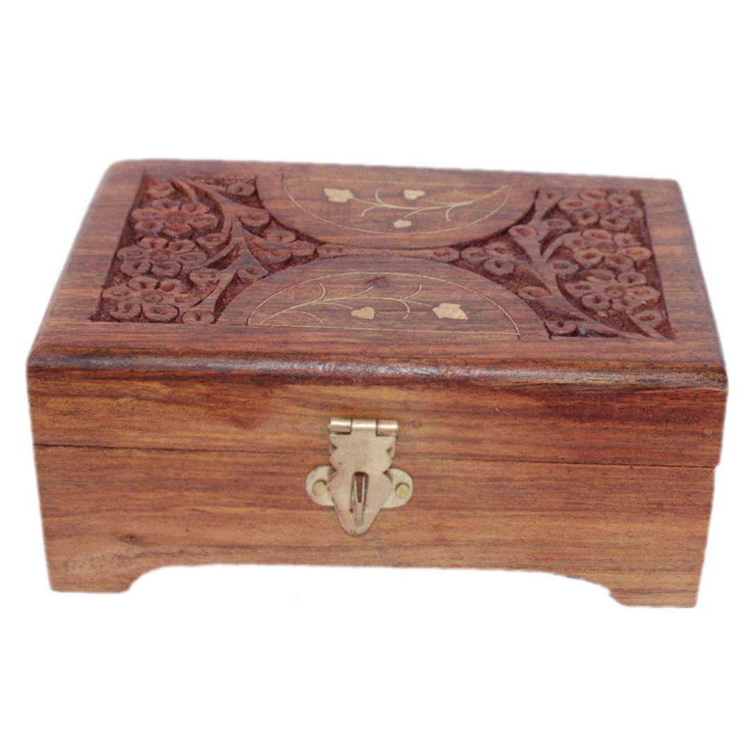 Bring home a piece of tradition with this Sheesham Wood Hand-Carved Jewellery Box. Measuring 6×4 inches, it is compact yet spacious enough to store your jewellery, trinkets, accessories, or small keepsakes.