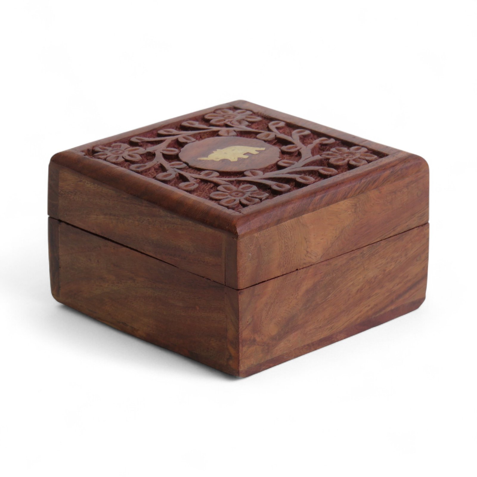 Compact in size (4×4 inches), it is a versatile multipurpose wooden organizer for jewellery, coins, trinkets, or keepsakes. Crafted from 100% pure Sheesham wood, the box offers durability along with aesthetic appeal.