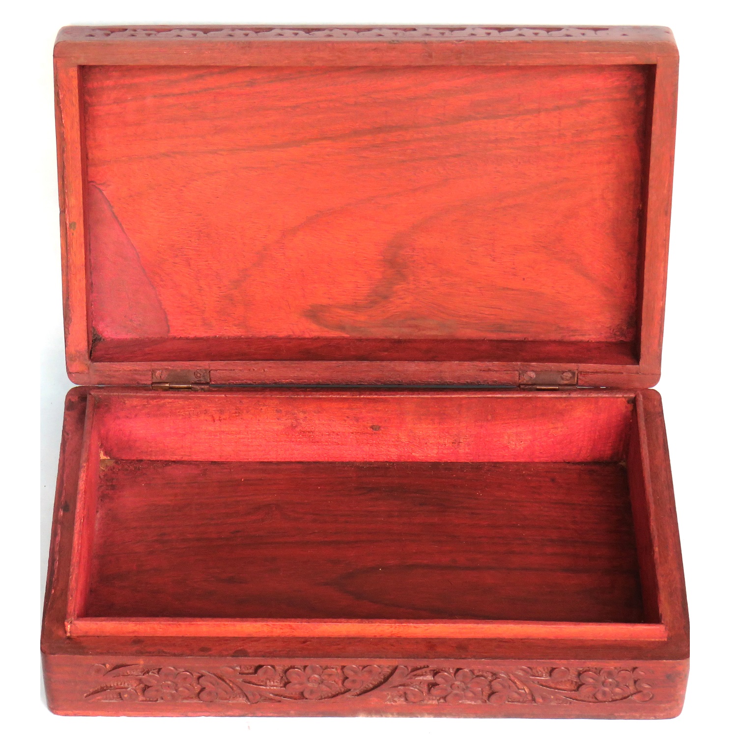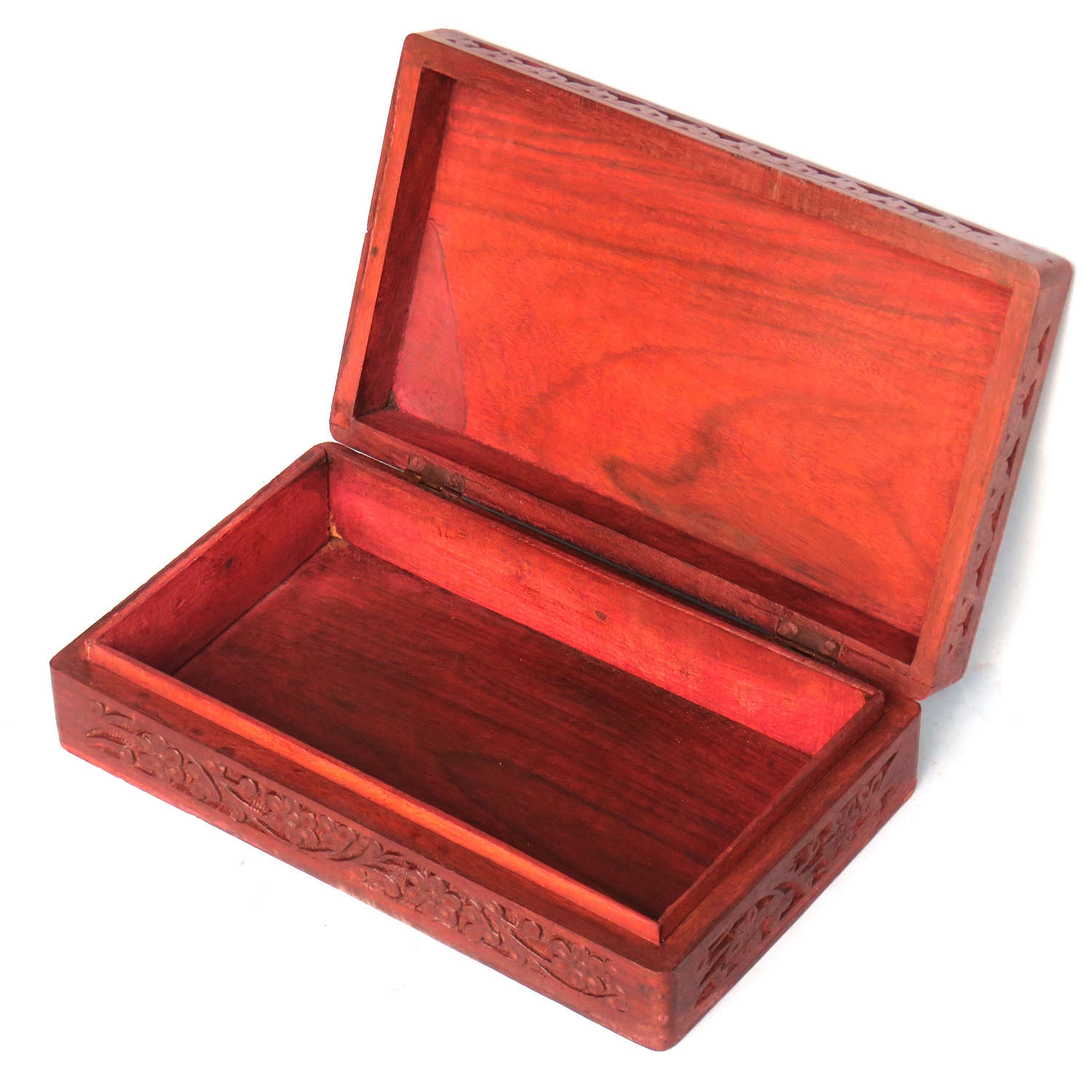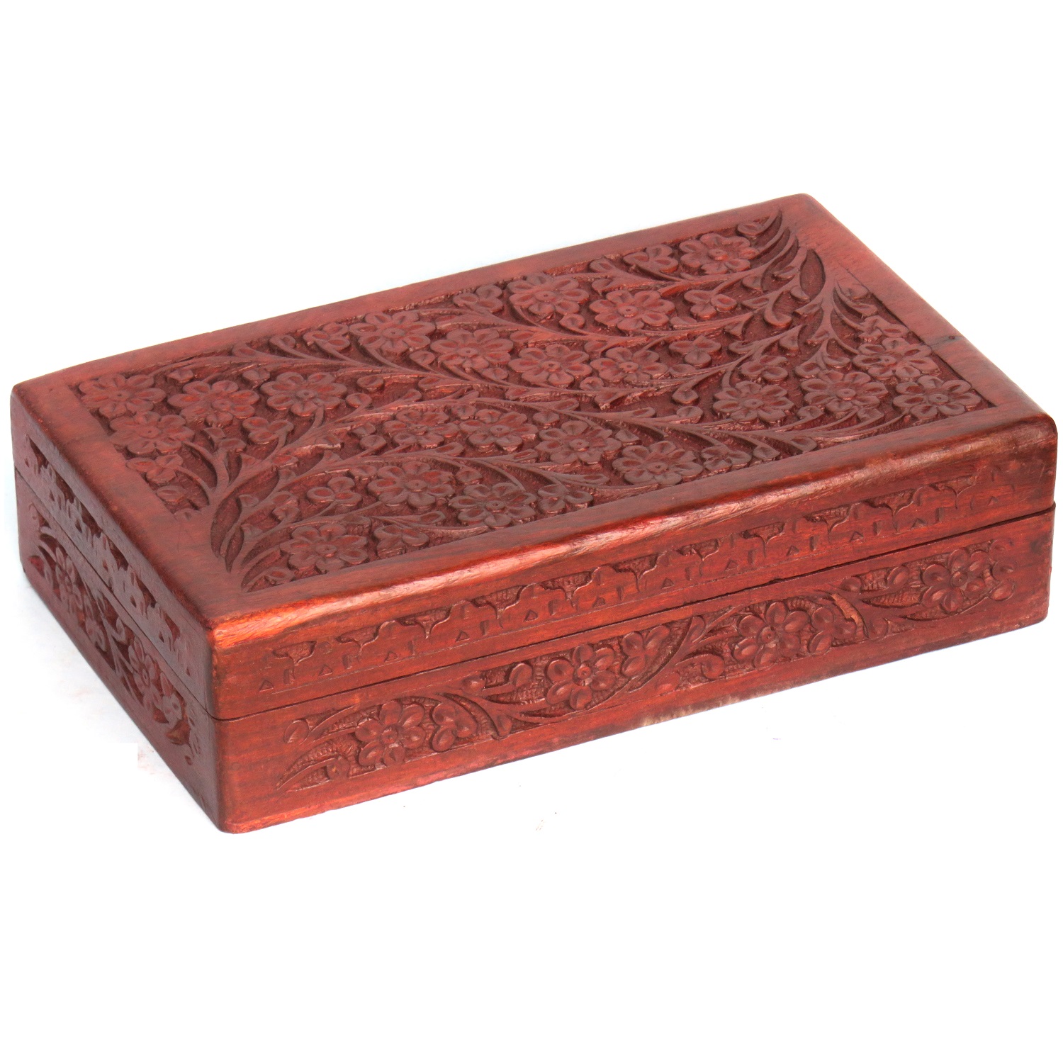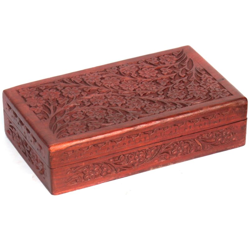 The detailed floral carving work highlights traditional craftsmanship, making this wooden box not only a functional organiser but also a decorative piece for your home.