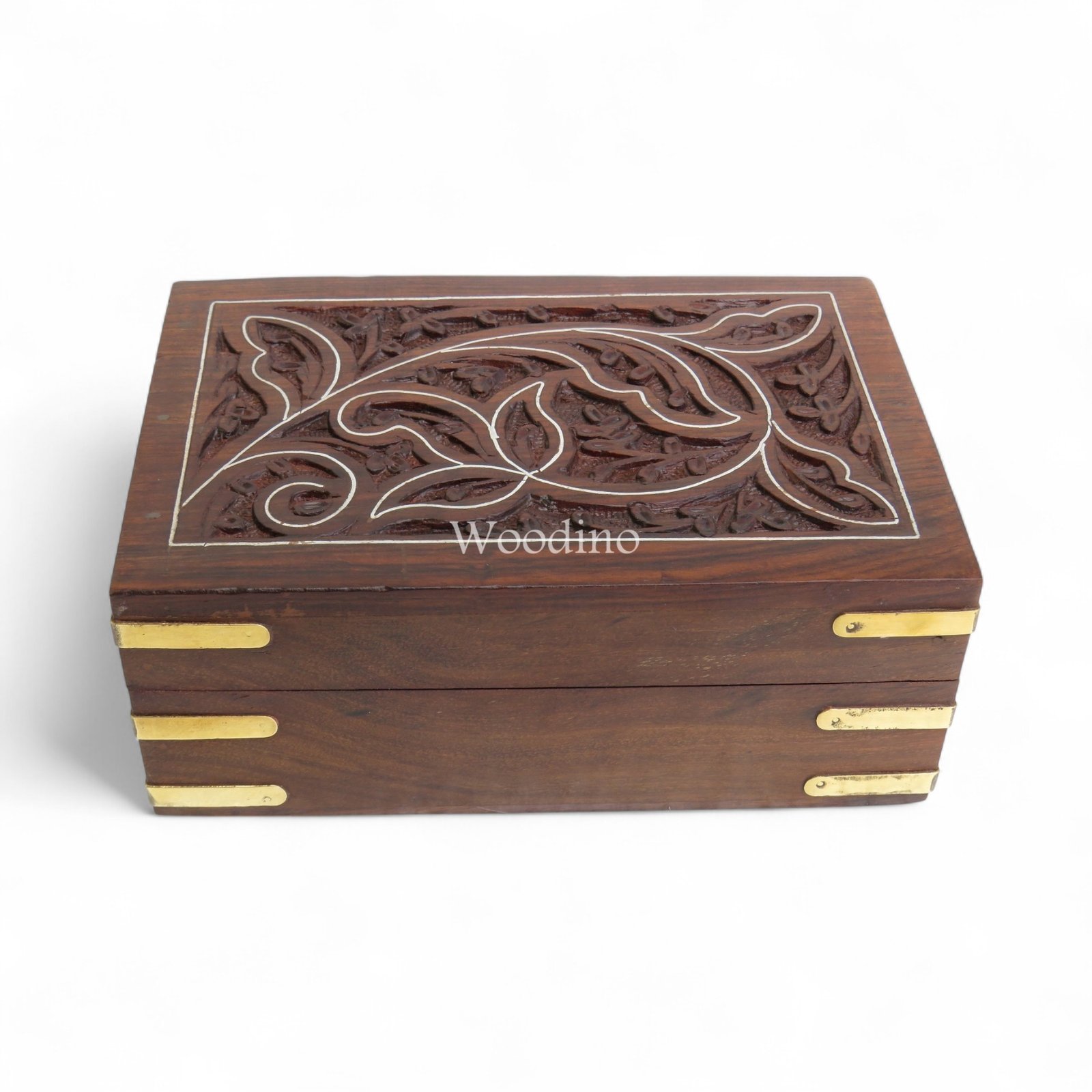 This Sheesham Wood Jewellery Box showcases timeless craftsmanship with intricate carving and a beautiful white wire inlay design. Built from solid Sheesham wood, it ensures long-lasting durability while adding elegance to your home décor.