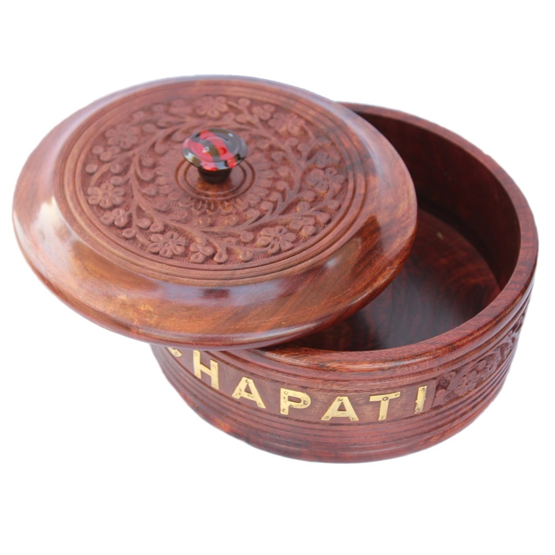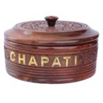 The unique alphabetic decorative design on the surface adds a touch of elegance, making it not just a practical kitchen essential but also a decorative table accessory. The fitted wooden lid ensures your chapati, roti, puri, or paratha stays warm and fresh for longer.