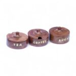 Organize your kitchen in style with this Set of 3 Solid Wood Spice & Tea Storage Jars (5×2 Inch each). Handcrafted from premium solid wood, these multipurpose round jars are designed to store tea, coffee, sugar, seasonings, spices, and condiments.