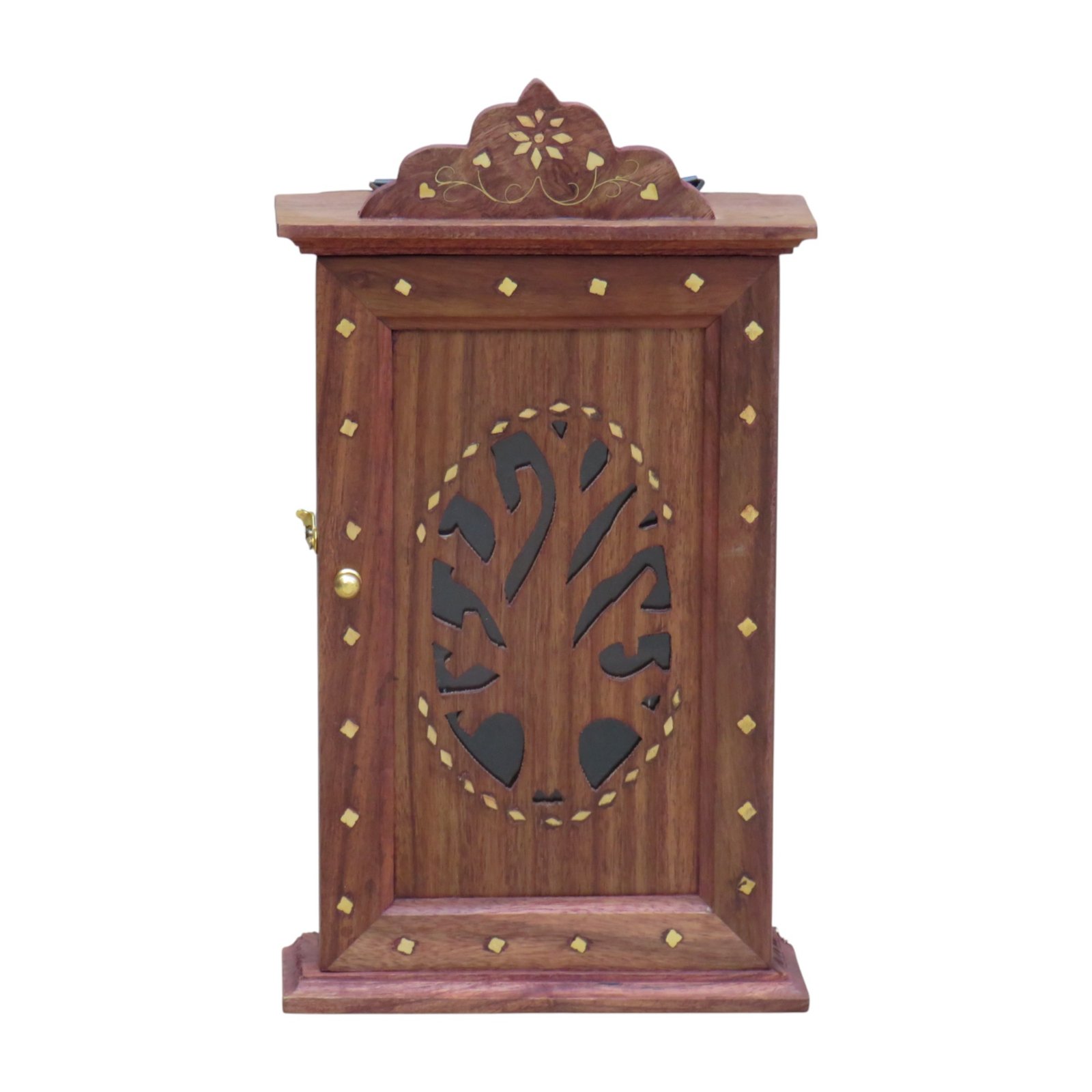 Organize your keys in a stylish and traditional way with the Woodino Sheesham Wood Key Holder Box featuring a Tree of Life design. Handcrafted from solid sheesham wood, this wall-mounted key holder is designed in an almirah-style cabinet with a vintage look and elegant brass inlay work.