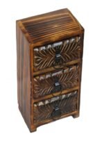 Organise your valuables in style with this Wooden 3 Drawer Small Jewellery Box. Handcrafted by skilled artisans, it features intricate brass work detailing that adds elegance and charm.
