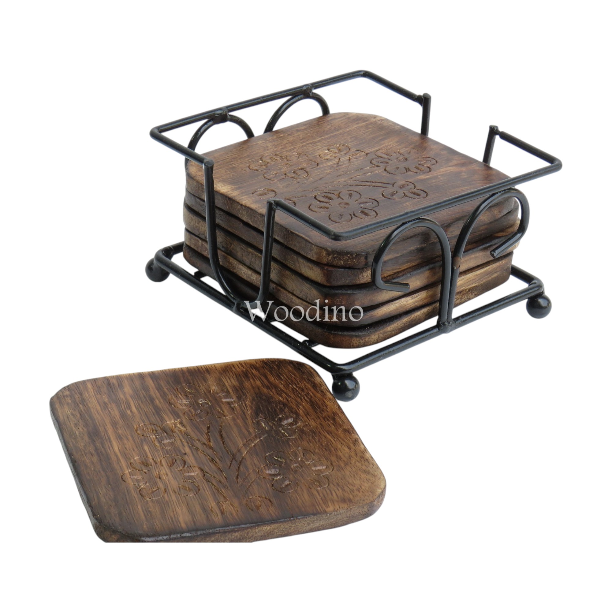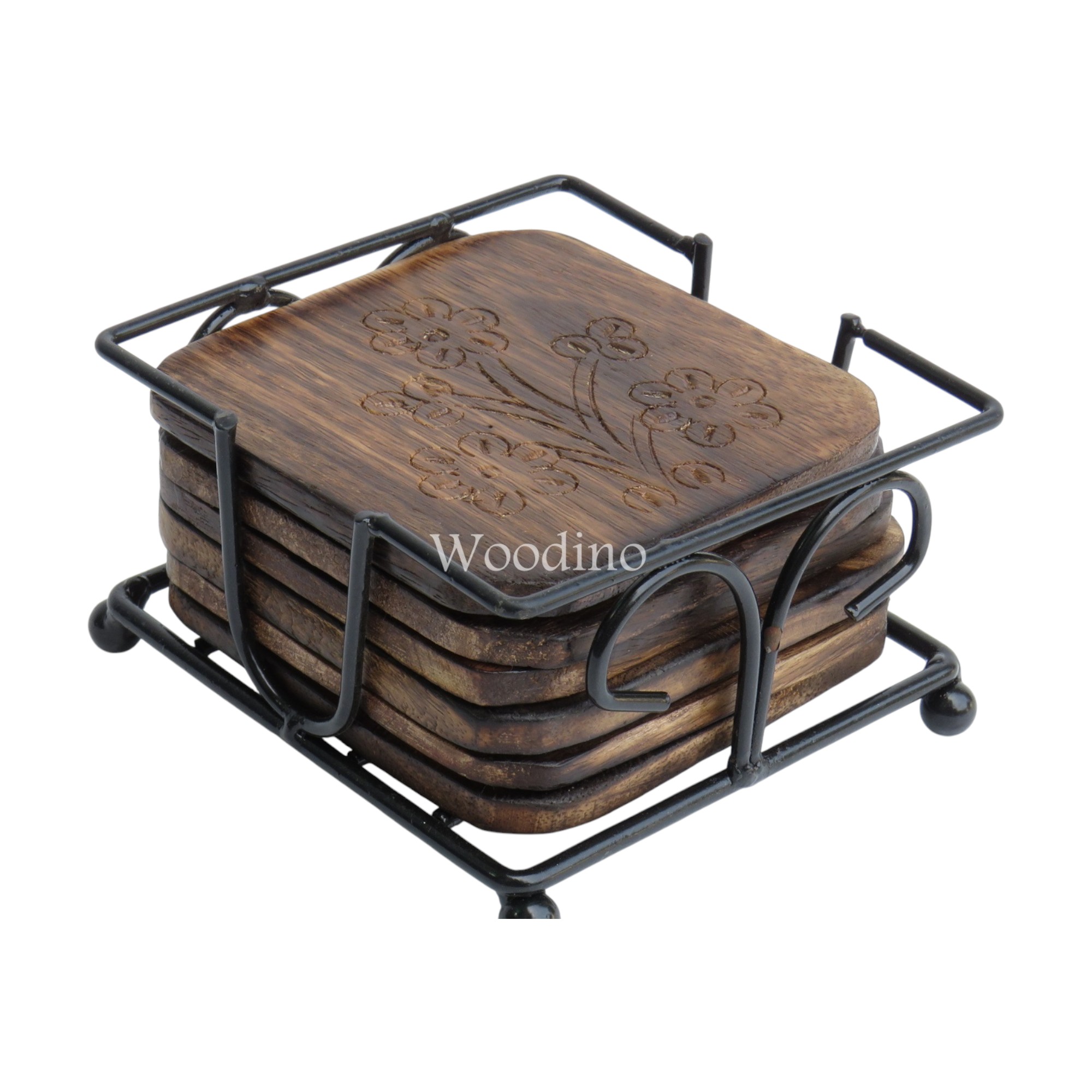 Protect your tabletops in style with the Woodino Wooden Coasters with Holder. Featuring a rustic handcrafted design, these coasters are both practical and decorative.