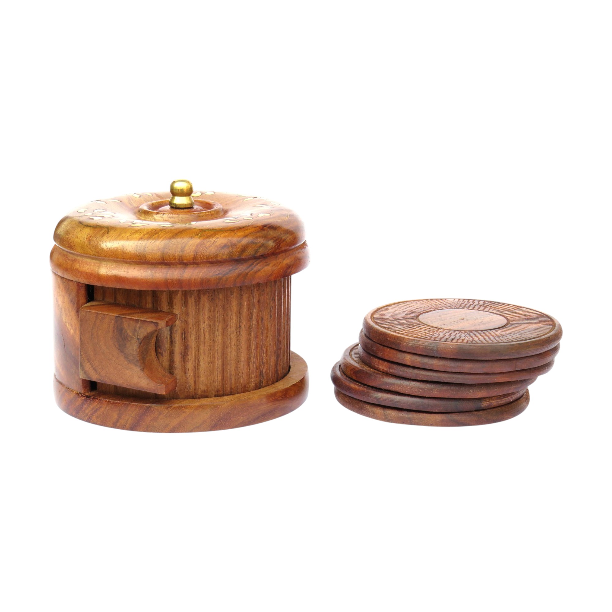 Enhance your dining and kitchen experience with this Wooden Round Carved Coaster Set of 6. Each coaster measures 3 inches in diameter, beautifully carved by skilled artisans to create a stylish yet functional tabletop accessory.