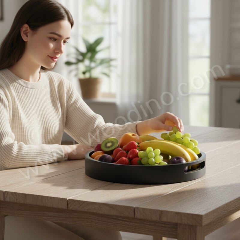 Serve and organize in a premium way with the Woodino Black Round Serving Tray (12 Inch). Crafted from quality mango wood with a smooth premium finish, this tray is designed for both everyday use and stylish presentation.