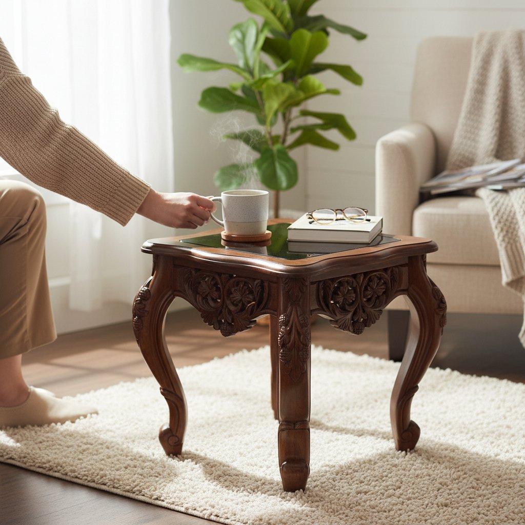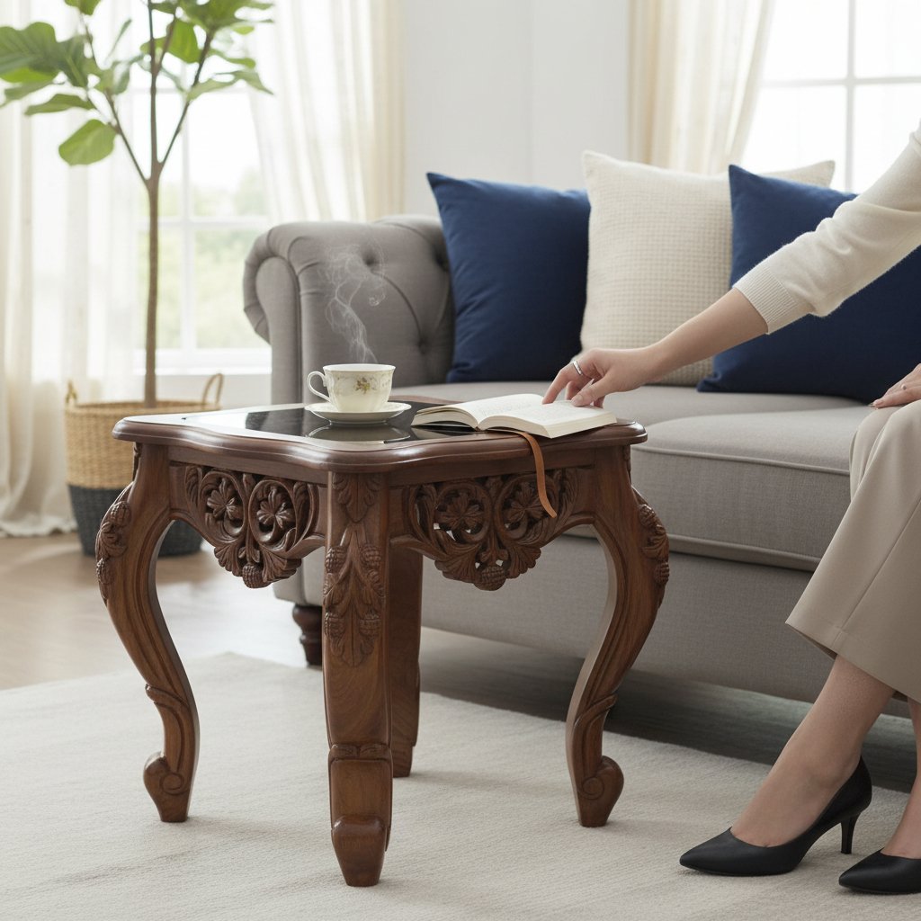 - 1 × Woodino Hand Carved Sheesham Wood End Table (18×18 inch)