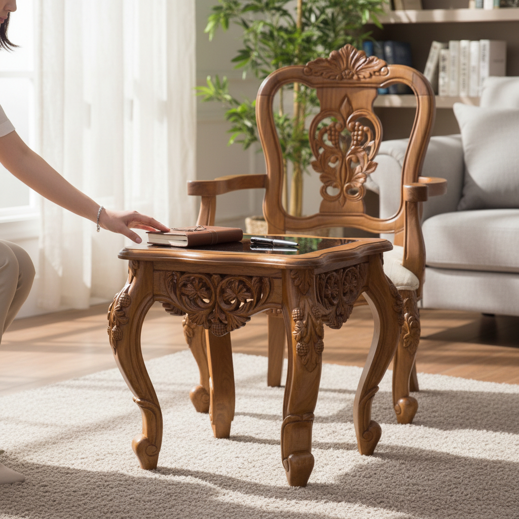 - 1 × Woodino Hand Carved Teak Wood End Table (18×18 inch)