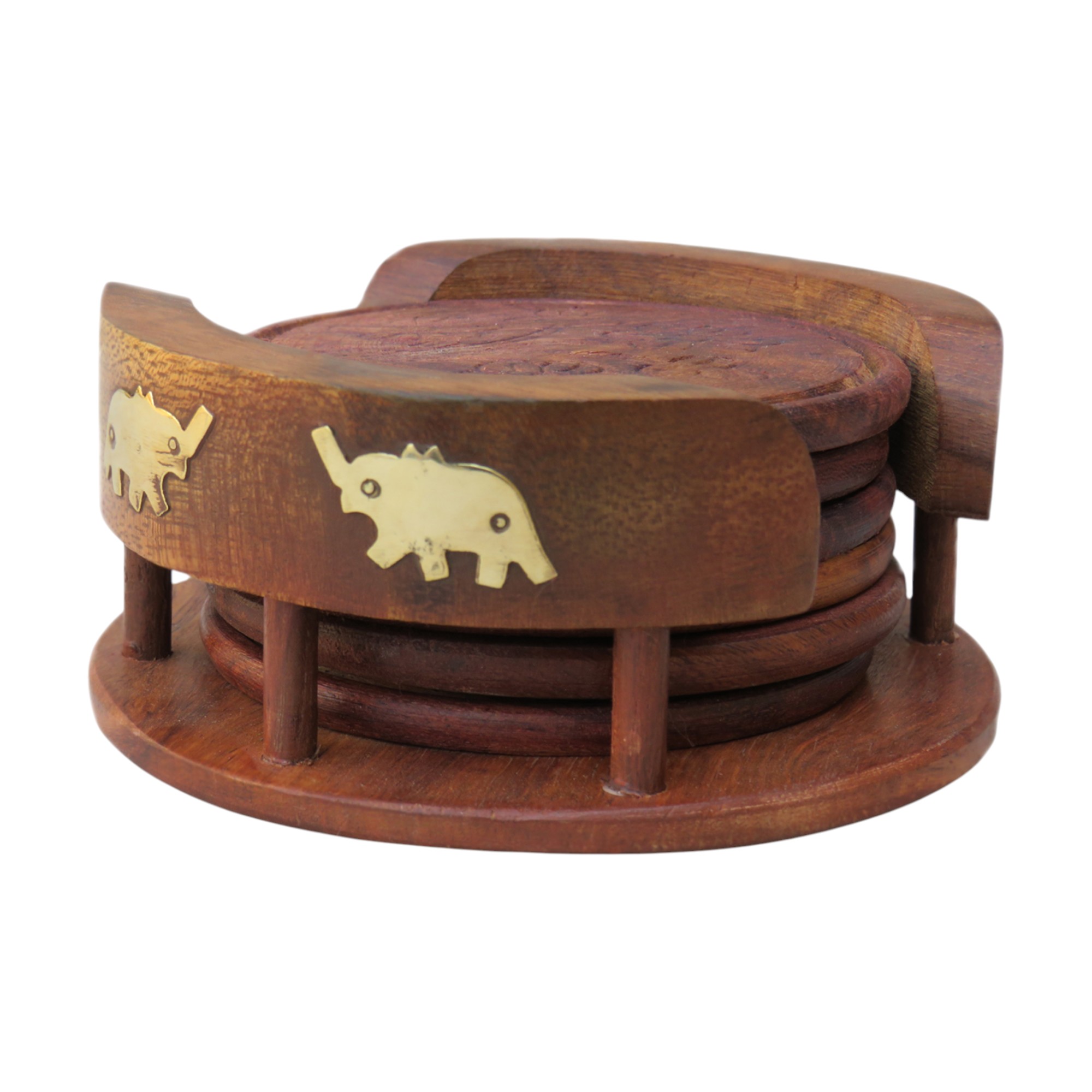 Add a touch of elegance to your table setting with the Handmade Wooden Elephant Brass Inlay Coaster Set. Beautifully crafted from premium Sheesham wood, each coaster features traditional elephant brass inlay work that highlights the artistry of skilled Indian craftsmen.