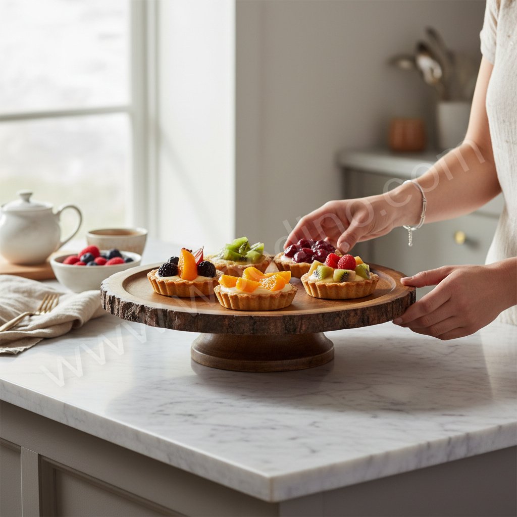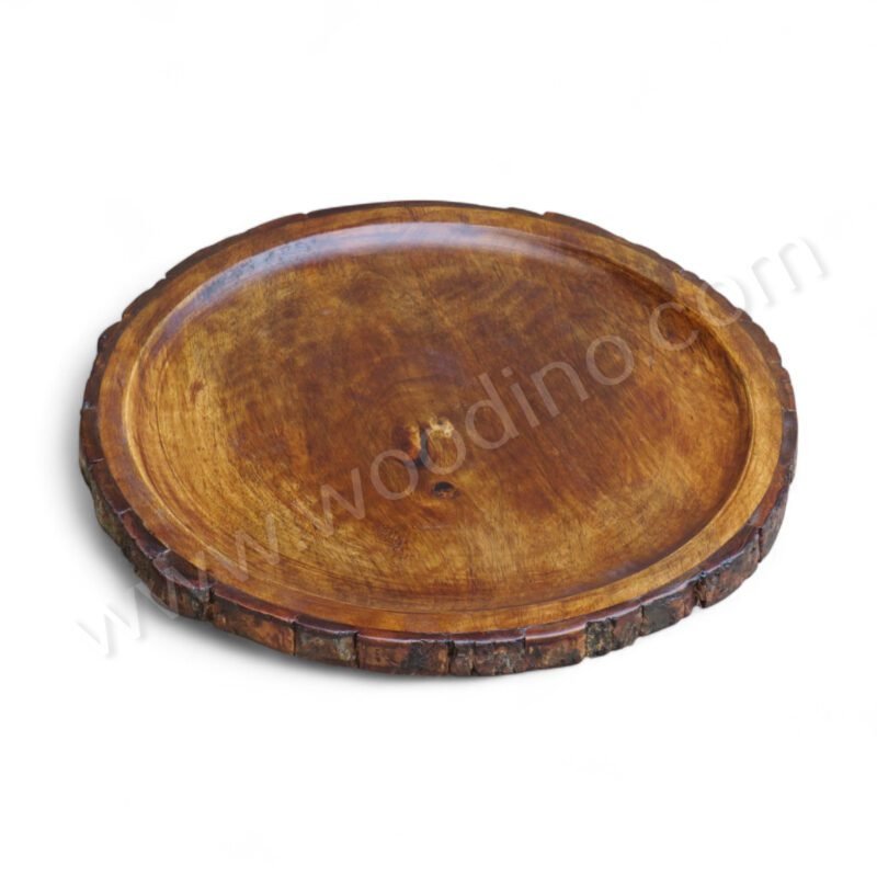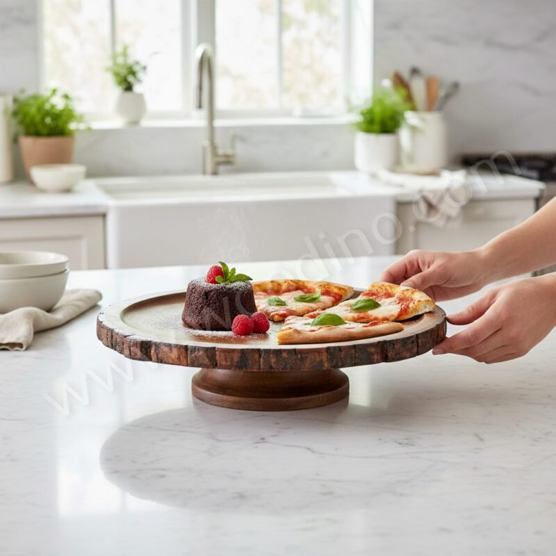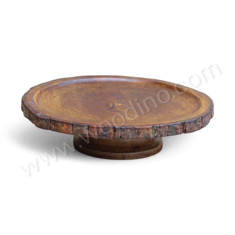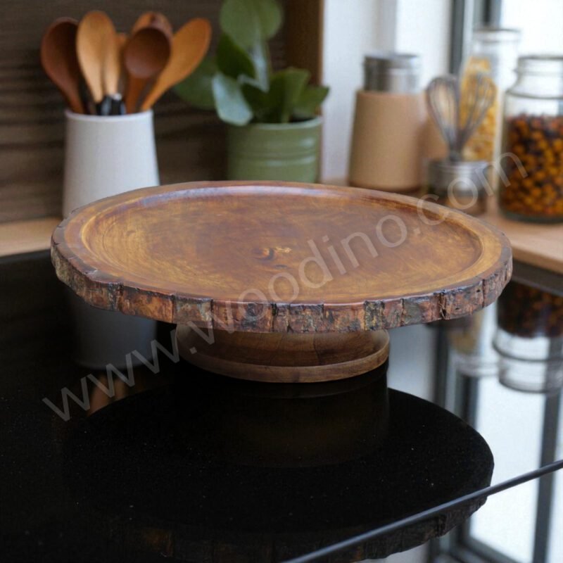 Serve and display your food in a premium rustic style with the Woodino Mango Wood Bark Cake Stand (12 Inch). Crafted from mango wood with a natural bark look, this stand is perfect for cake presentation, pizza serving, burgers, and premium restaurant-style food display.