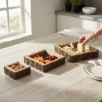 This versatile set includes three square wooden bowls in graduated sizes, making it ideal for multiple uses. It can be used as a serving platter, square serving bowl set, fruit tray for dining tables, dry fruit tray or dry fruit basket, and even as a candle wax holder for decorative candle making.