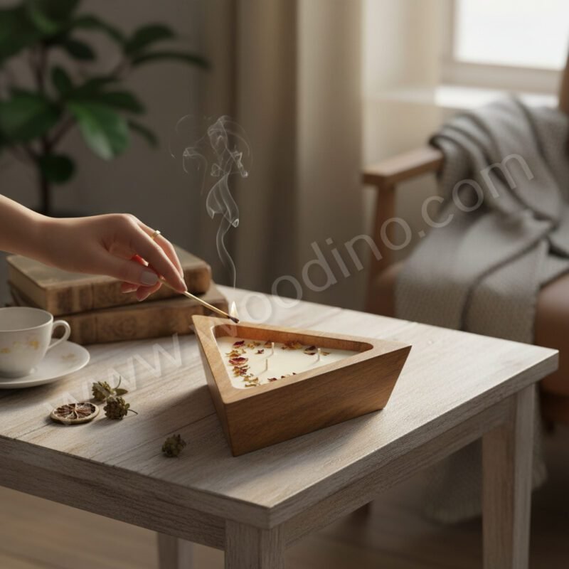 Create premium handmade candles with the Woodino Mango Wood Triangle Wax Candle Stand (5x5x2 Inch). Made from quality mango wood, this unique triangular wooden stand is specially designed for wax filling and DIY candle making.