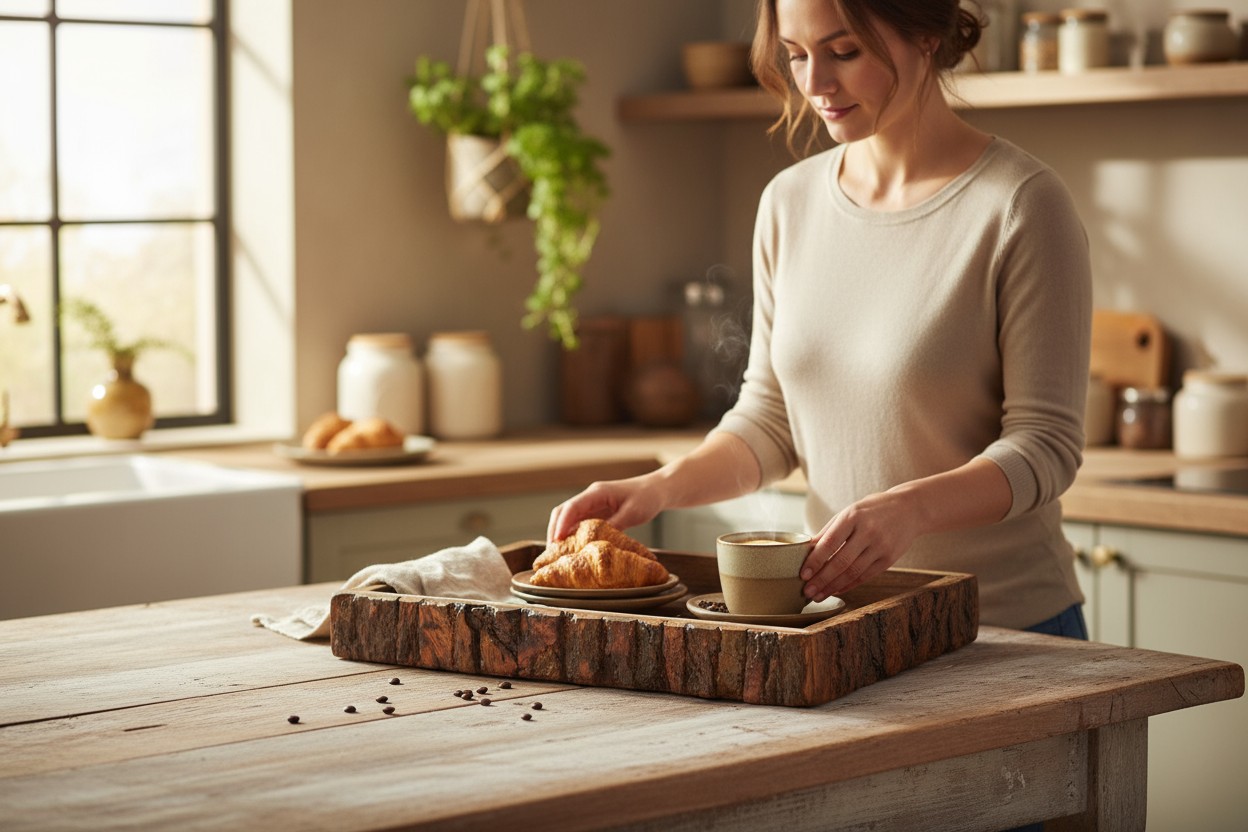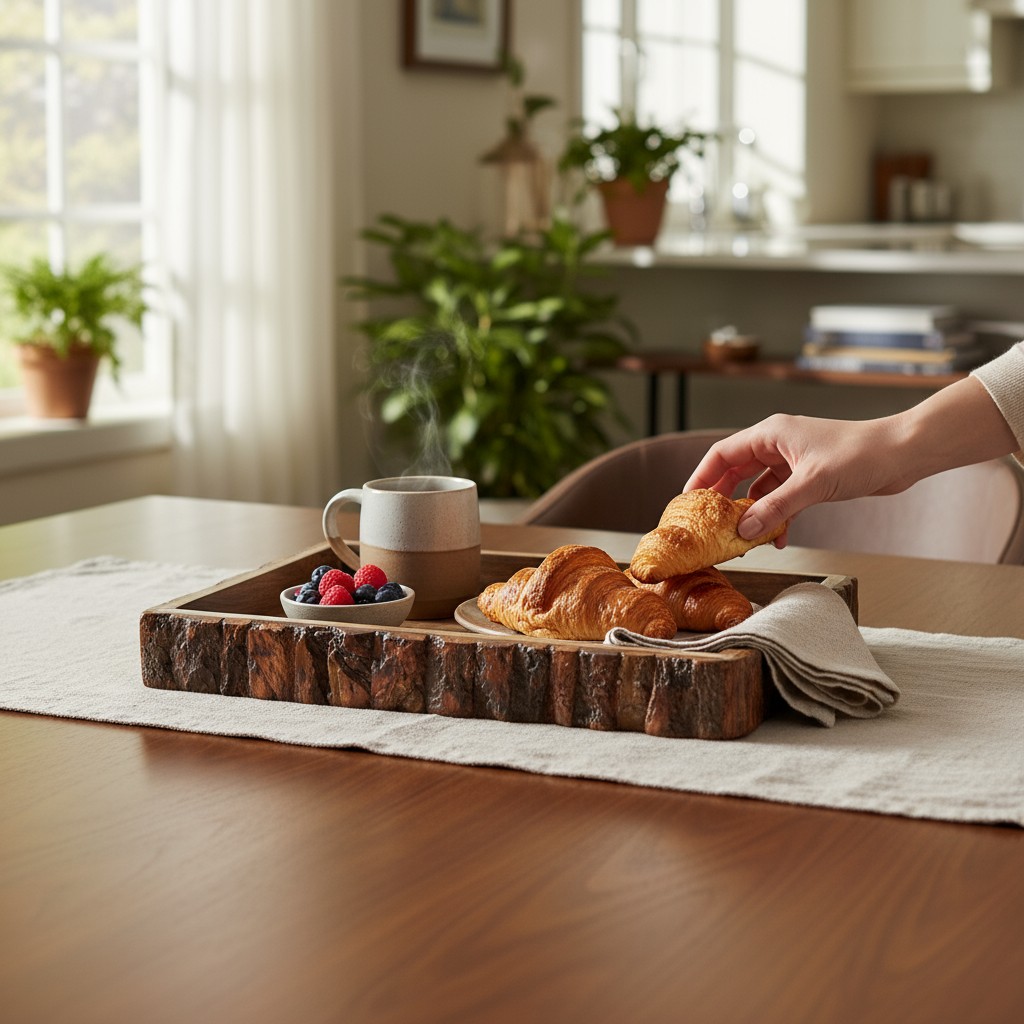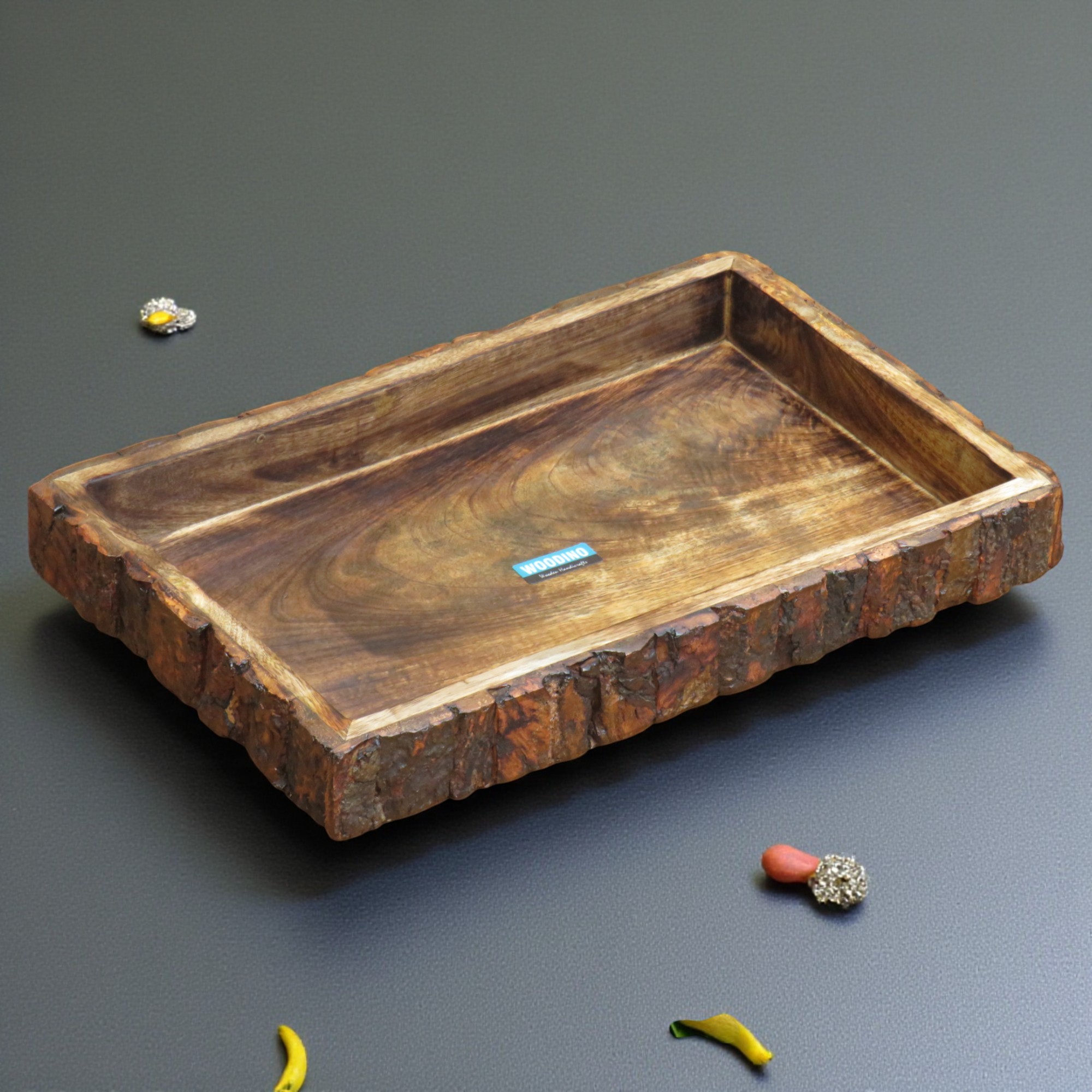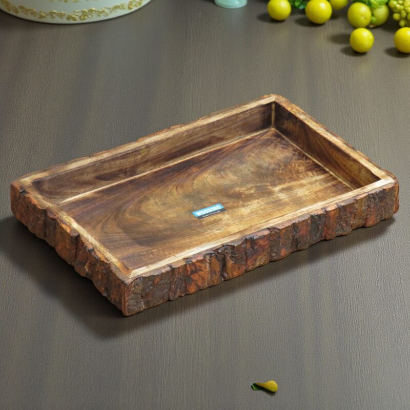 Expertly handcrafted from premium mango wood, each piece retains its natural bark (bakkal/chhal) edge, giving it an authentic handcrafted touch. The matte finish adds a refined, antique look while maintaining the wood’s organic appeal.