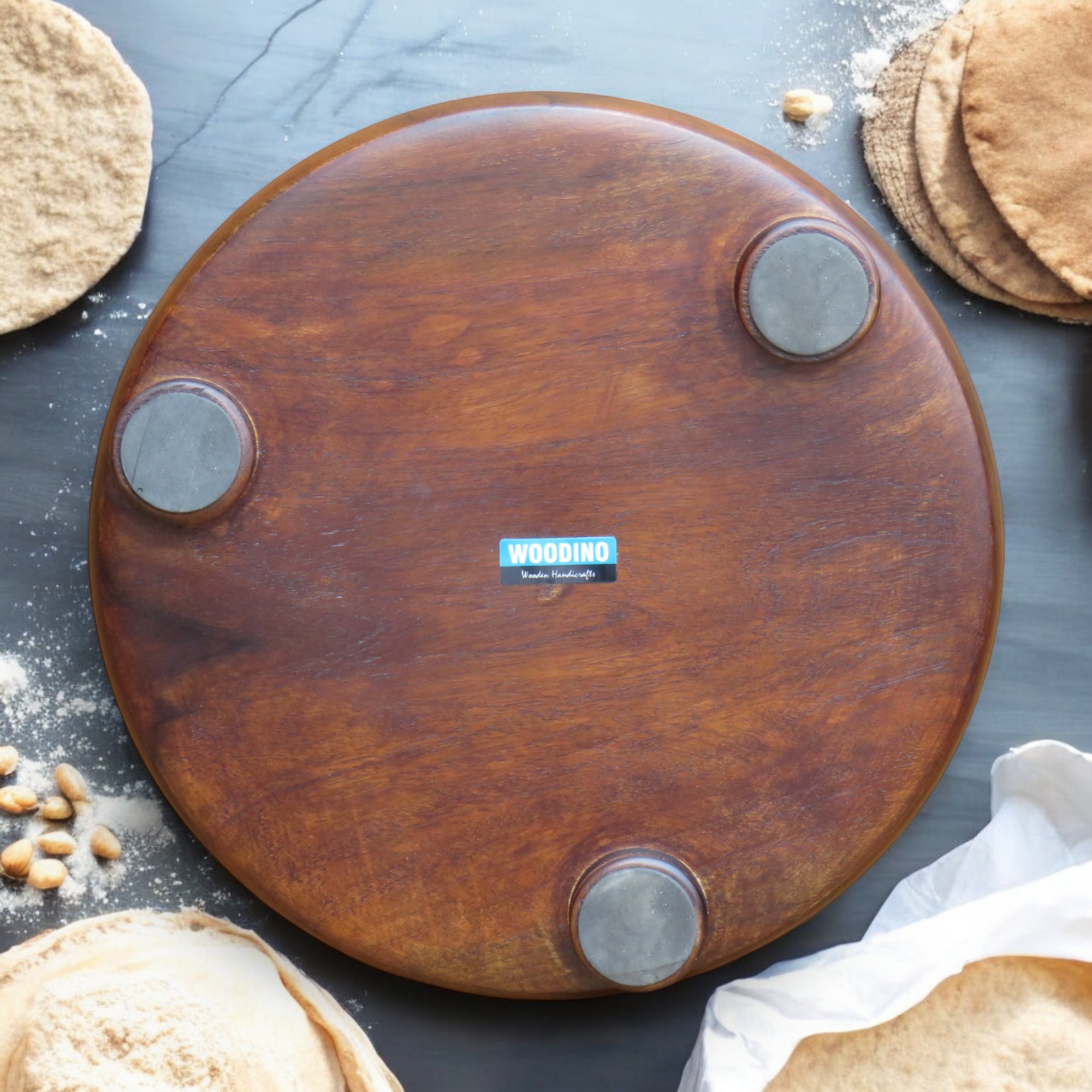 The Woodino Pure Sheesham Wood Chakla is a premium-quality rolling board crafted from solid Indian rosewood (Sheesham). Its 10-inch diameter makes it perfect for rolling soft, round chapatis, puris, or parathas with ease.