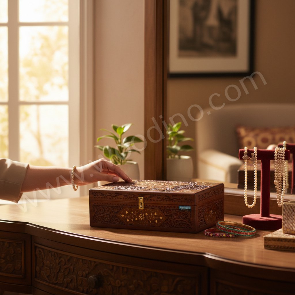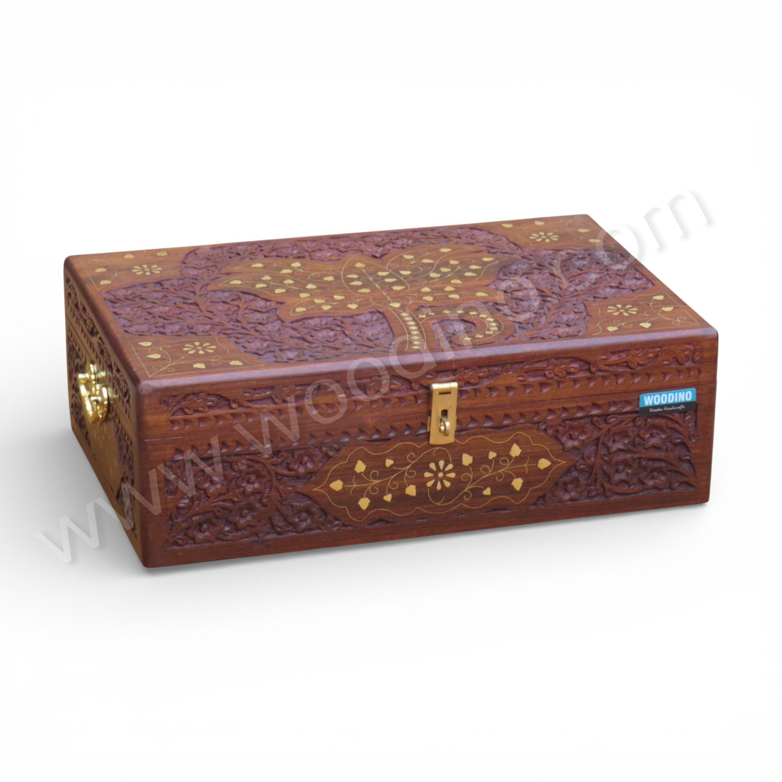 - 1 × Woodino Pure Sheesham Wood Jewellery Box (15×10×4 Inch — 38.1×25.4×10.2 CM approx.)