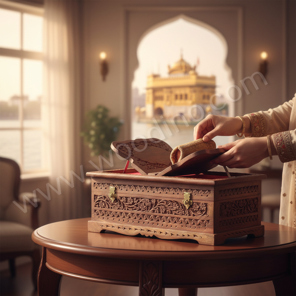 - 1 × Woodino Pure Sheesham Wood Sanchi Sahib Box / Rehal Box