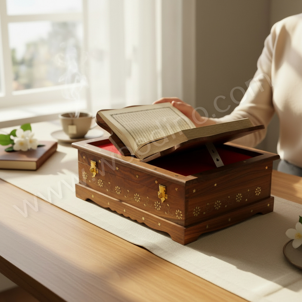 - 1 × Woodino Pure Sheesham Wood Sanchi Sahib Box / Rehal Box