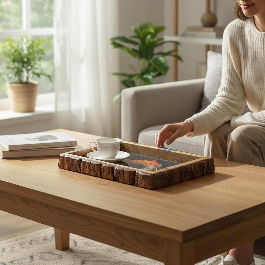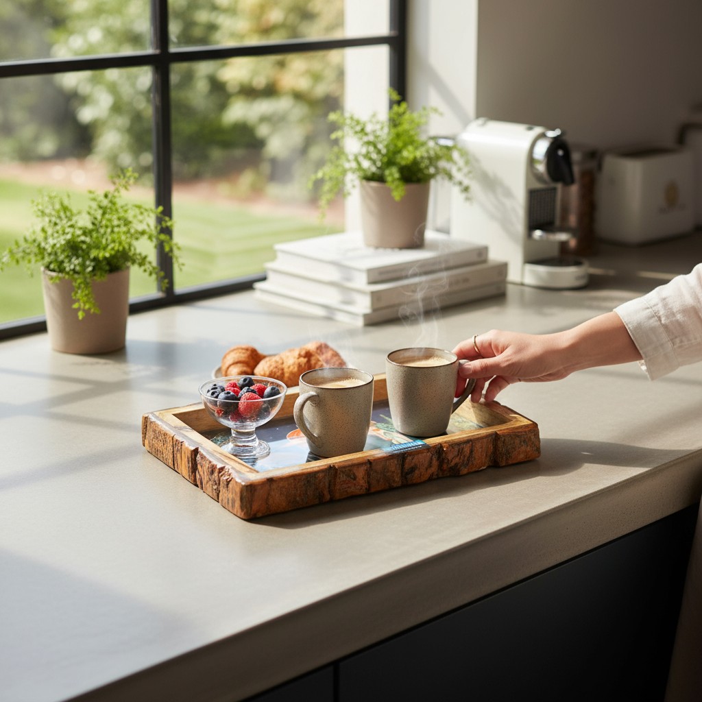 Bring home this handmade wooden tray that doubles up as a serving platter, organiser, or display board — a must-have for every modern kitchen.