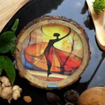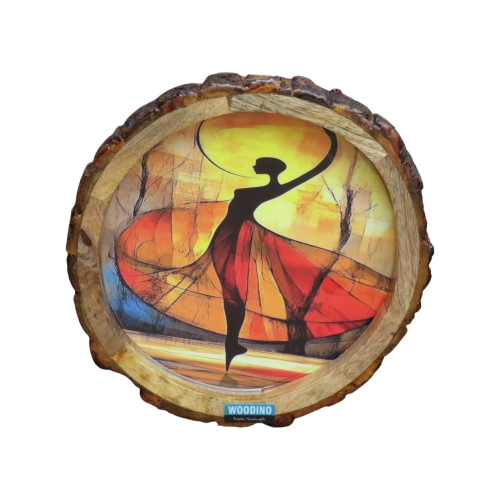 Woodino Round Bakkal /Bark Mango Wood Serving Platter – Multipurpose Tray for Snacks, ( Size: 10″) Abstract Dancing Lady Print