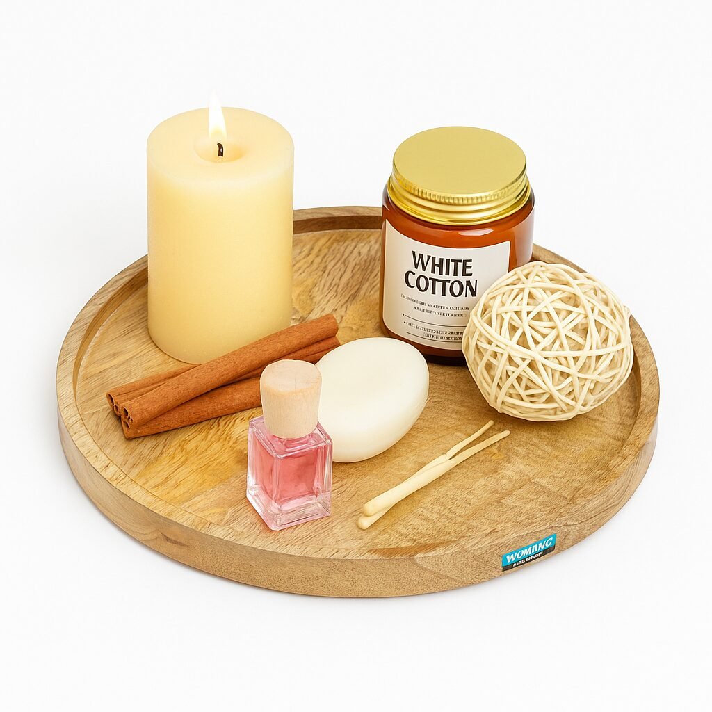 Bring warmth and elegance to your space with the Woodino Round Mango Wood Tray. Crafted from eco-friendly and durable mango wood, this 11-inch round tray features a smooth finish and natural grain patterns that add rustic charm to any setting.