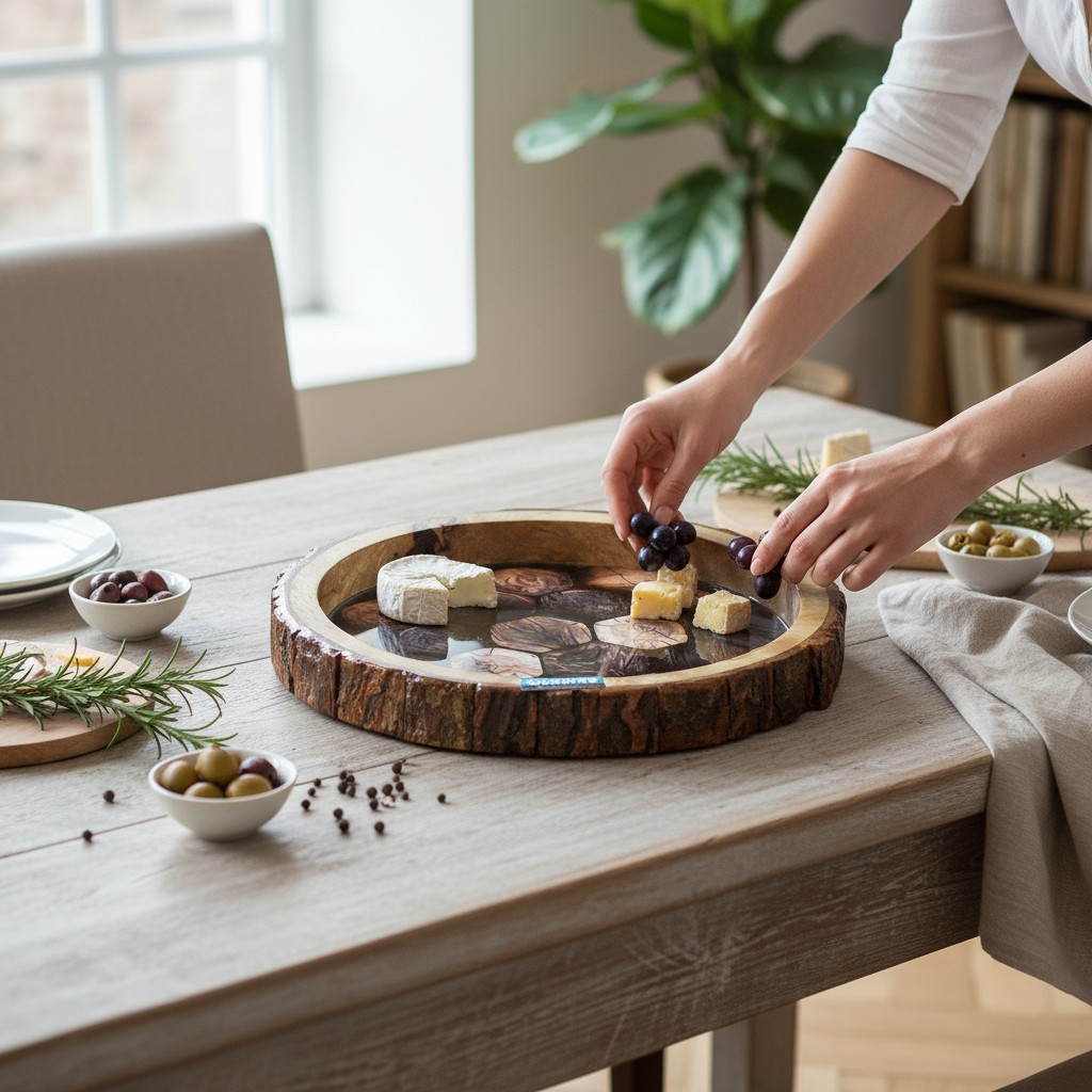 The circular shape adds a rustic charm while keeping it versatile for multiple purposes. Whether it’s for home gatherings, festive occasions, or professional catering, this platter ensures a stylish presentation every time. Its eco-friendly craftsmanship reflects sustainability and quality, making it a thoughtful gift for culinary enthusiasts.