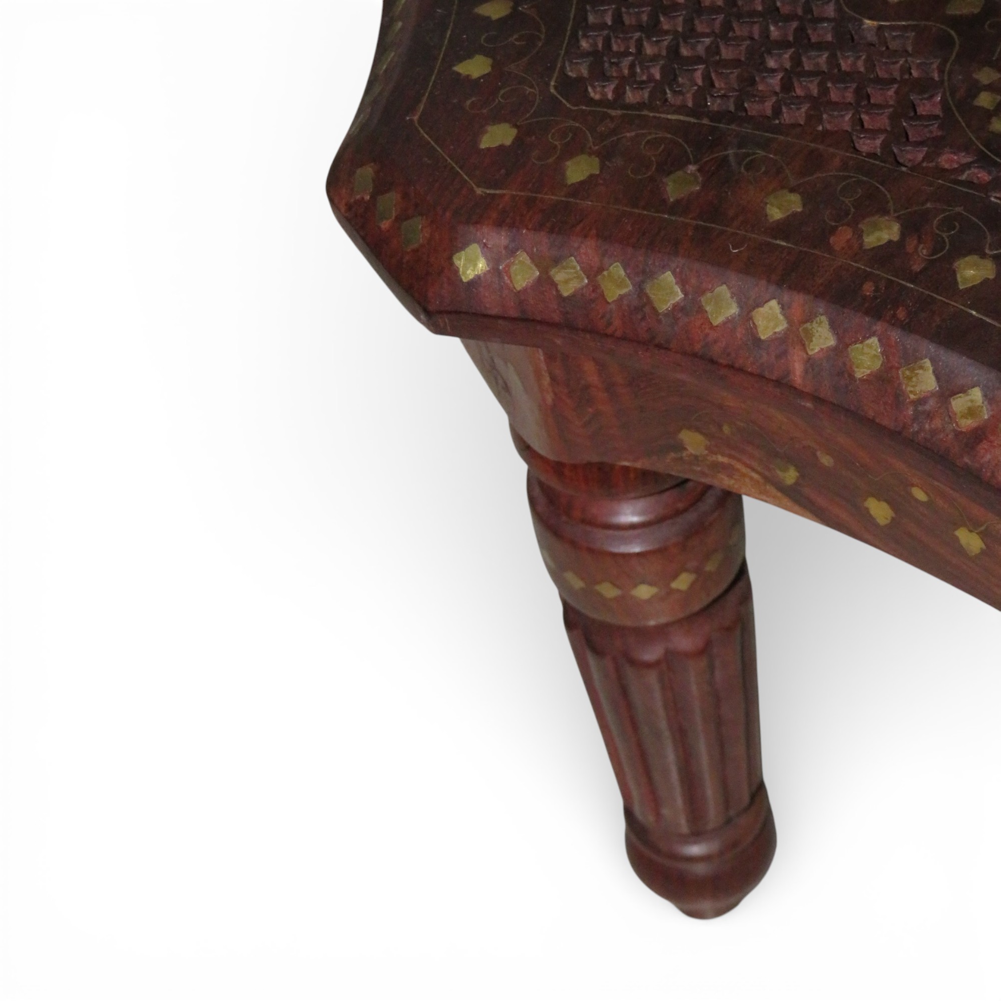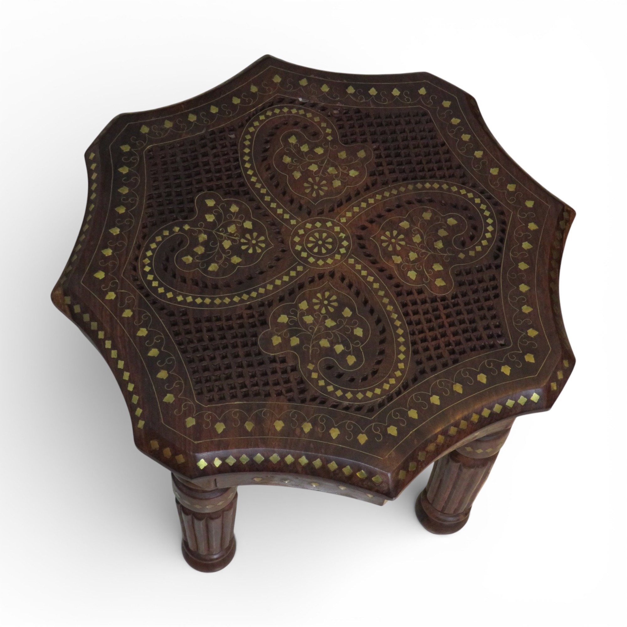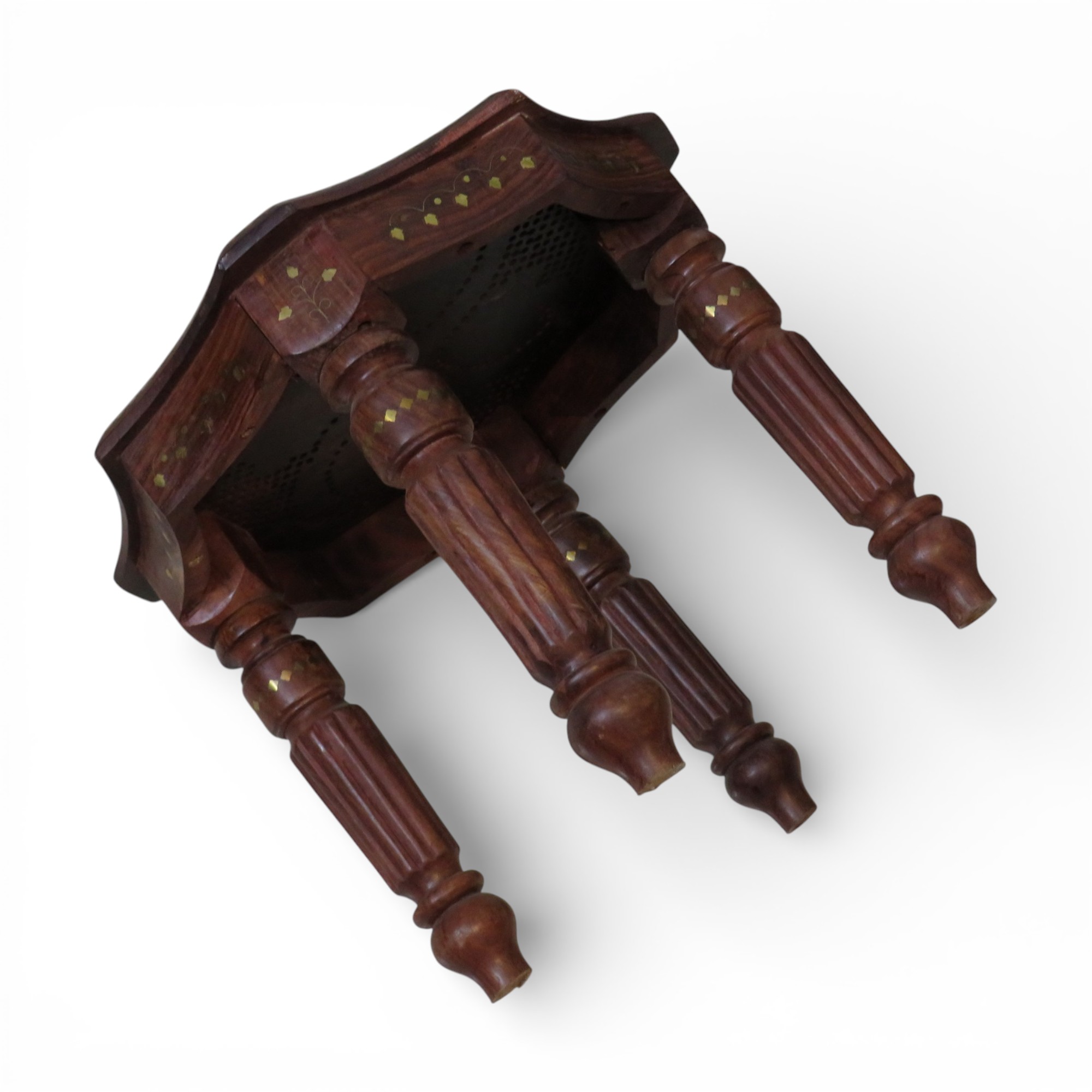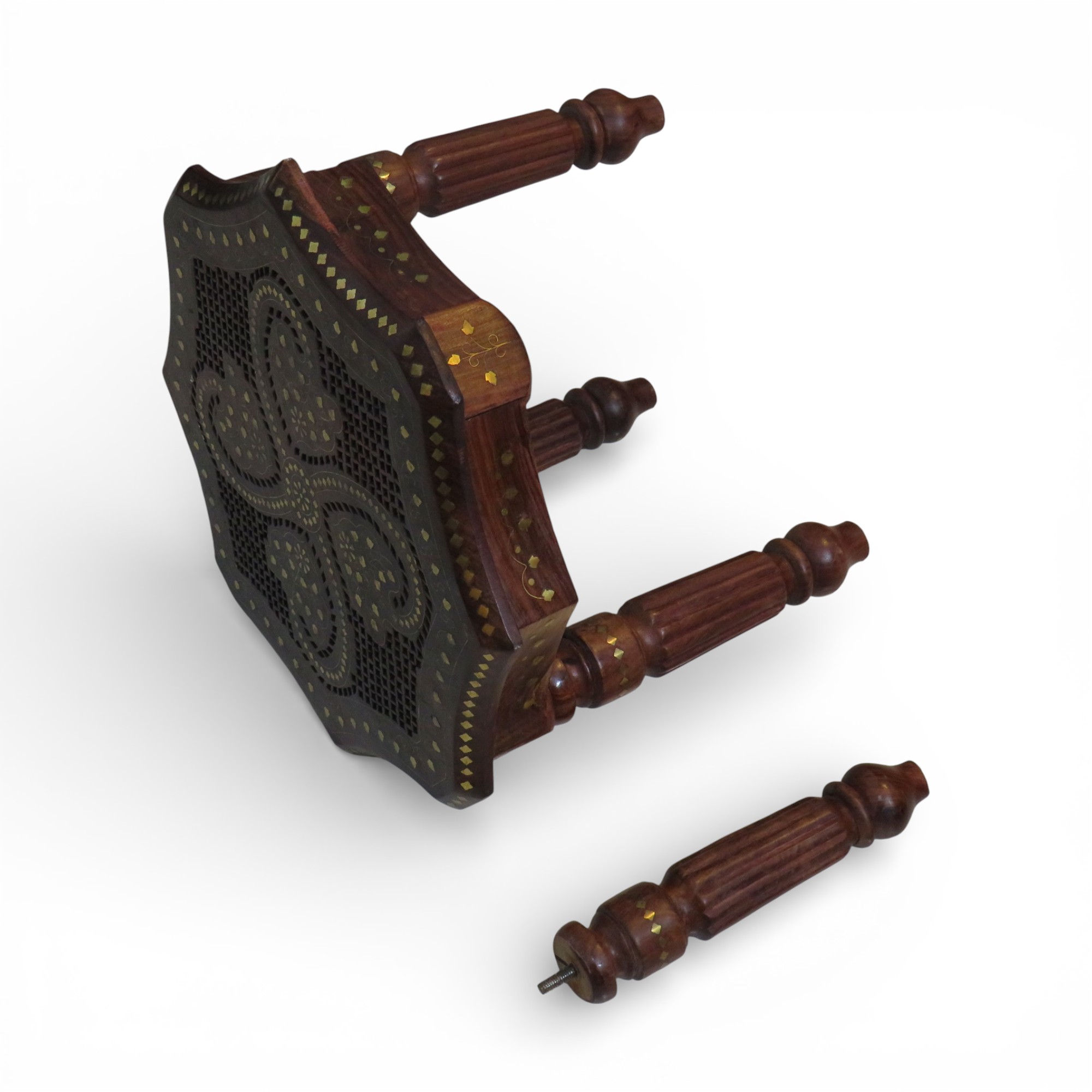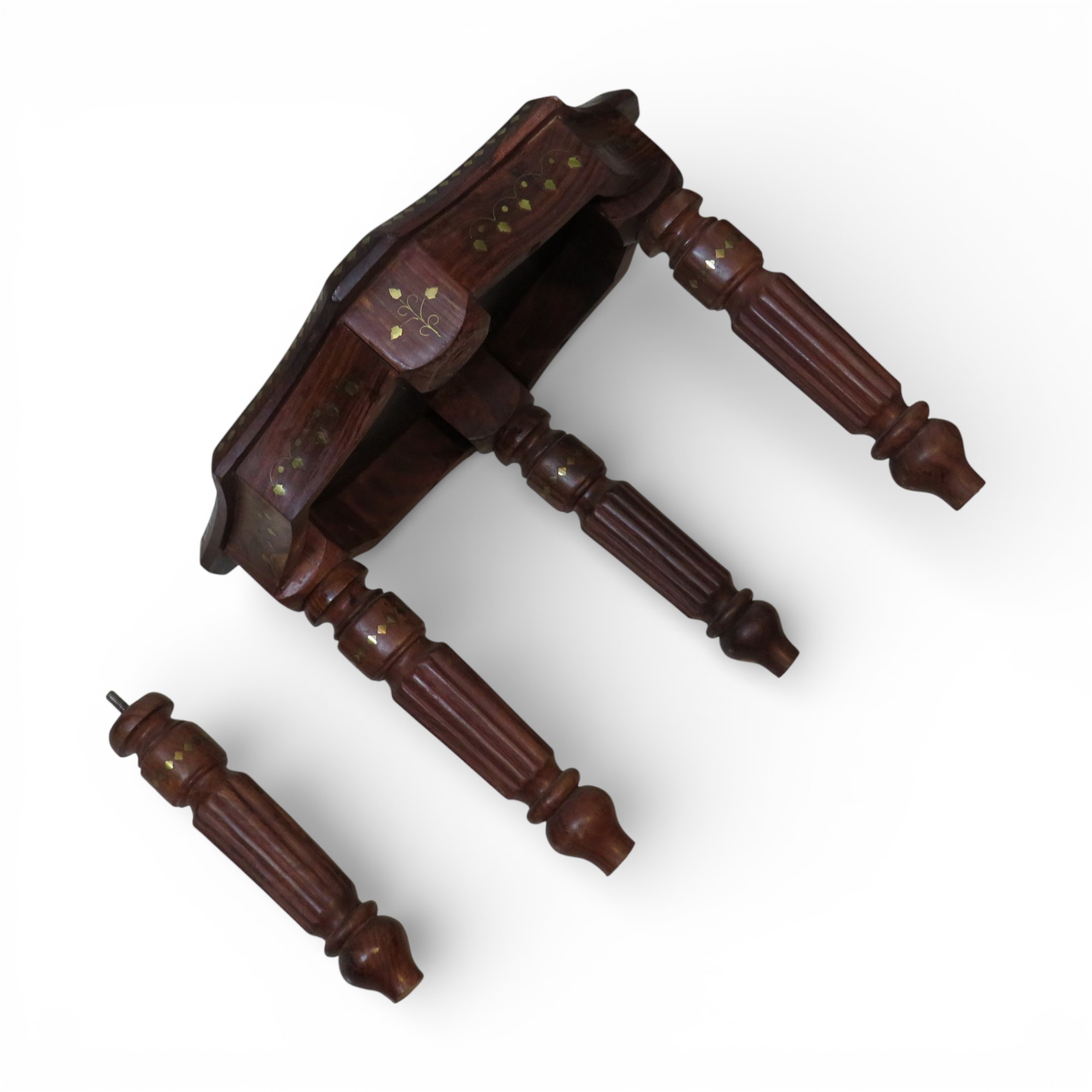 - 1 × Woodino Sheesham Wood Brass Inlay Octa Stool / End Table (18 Inch — 45.7 CM approx., Height 14 Inch — 35.6 CM approx.)