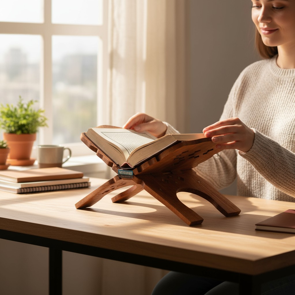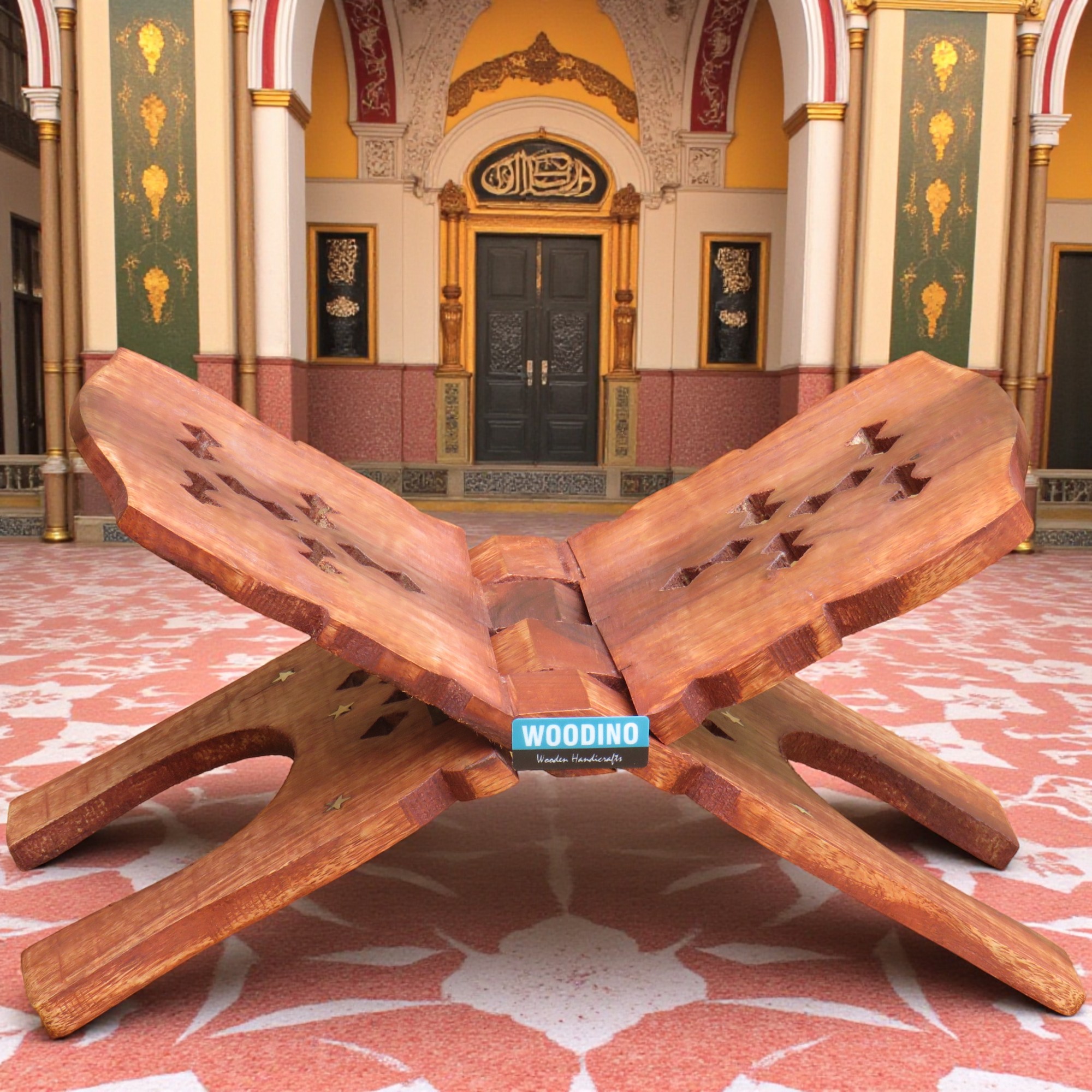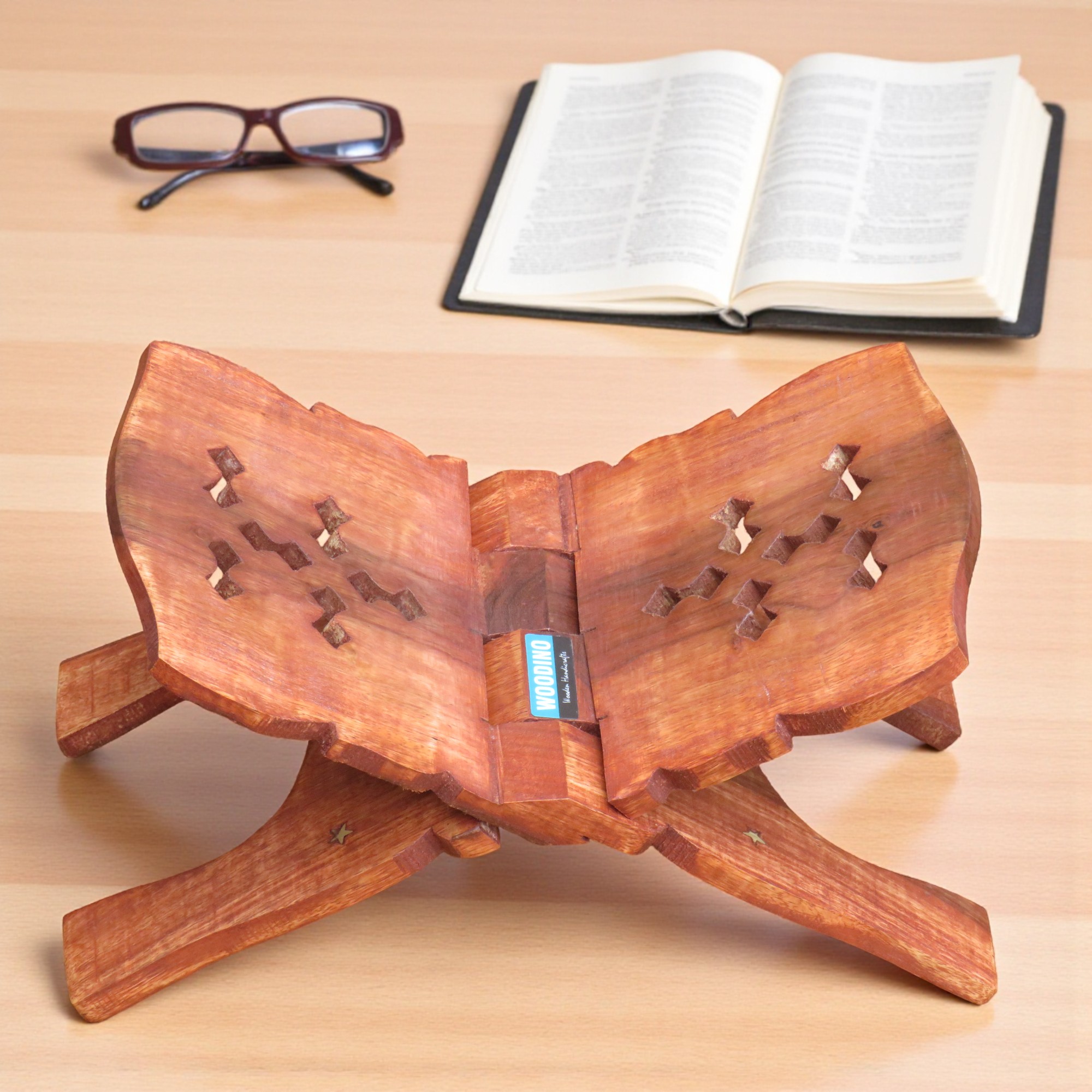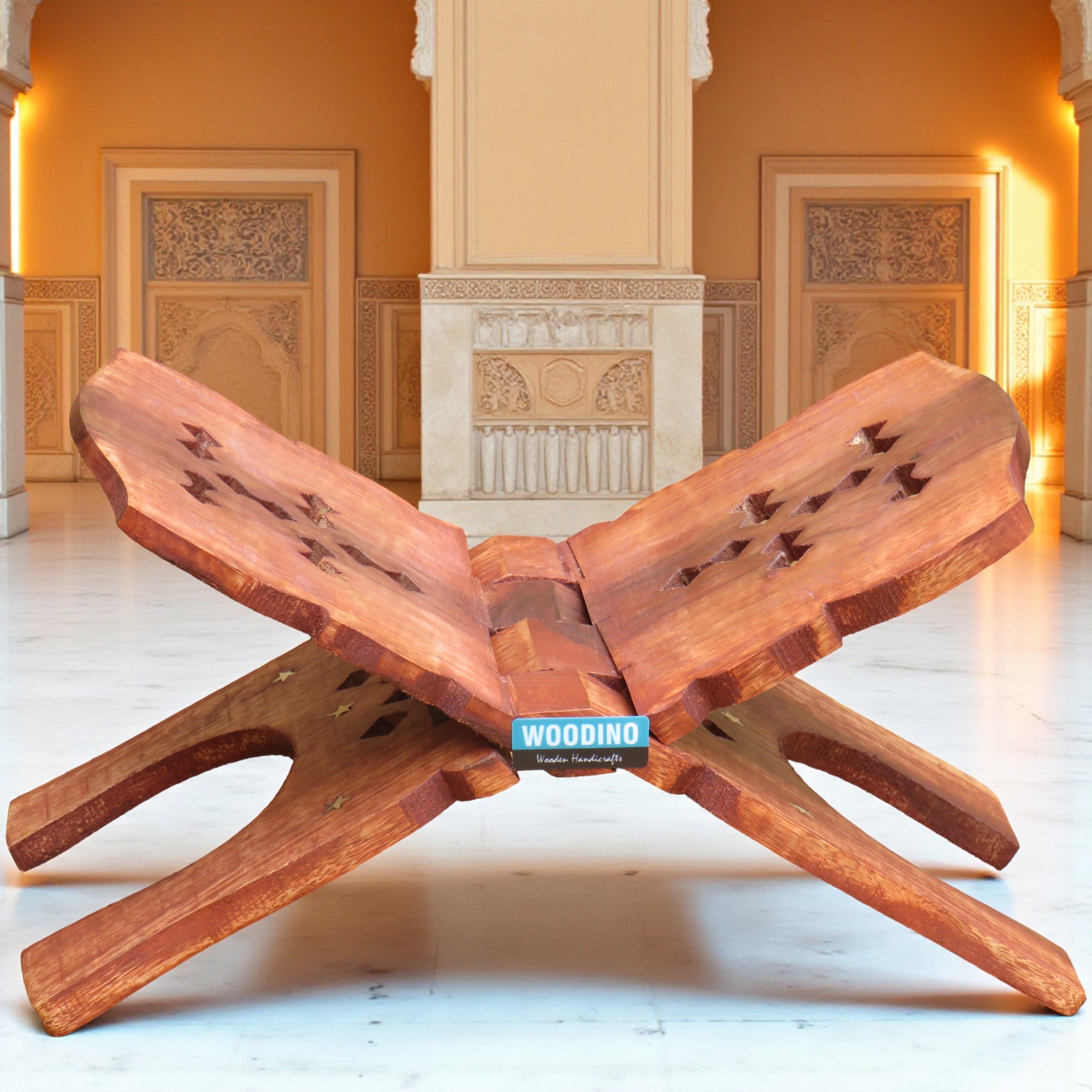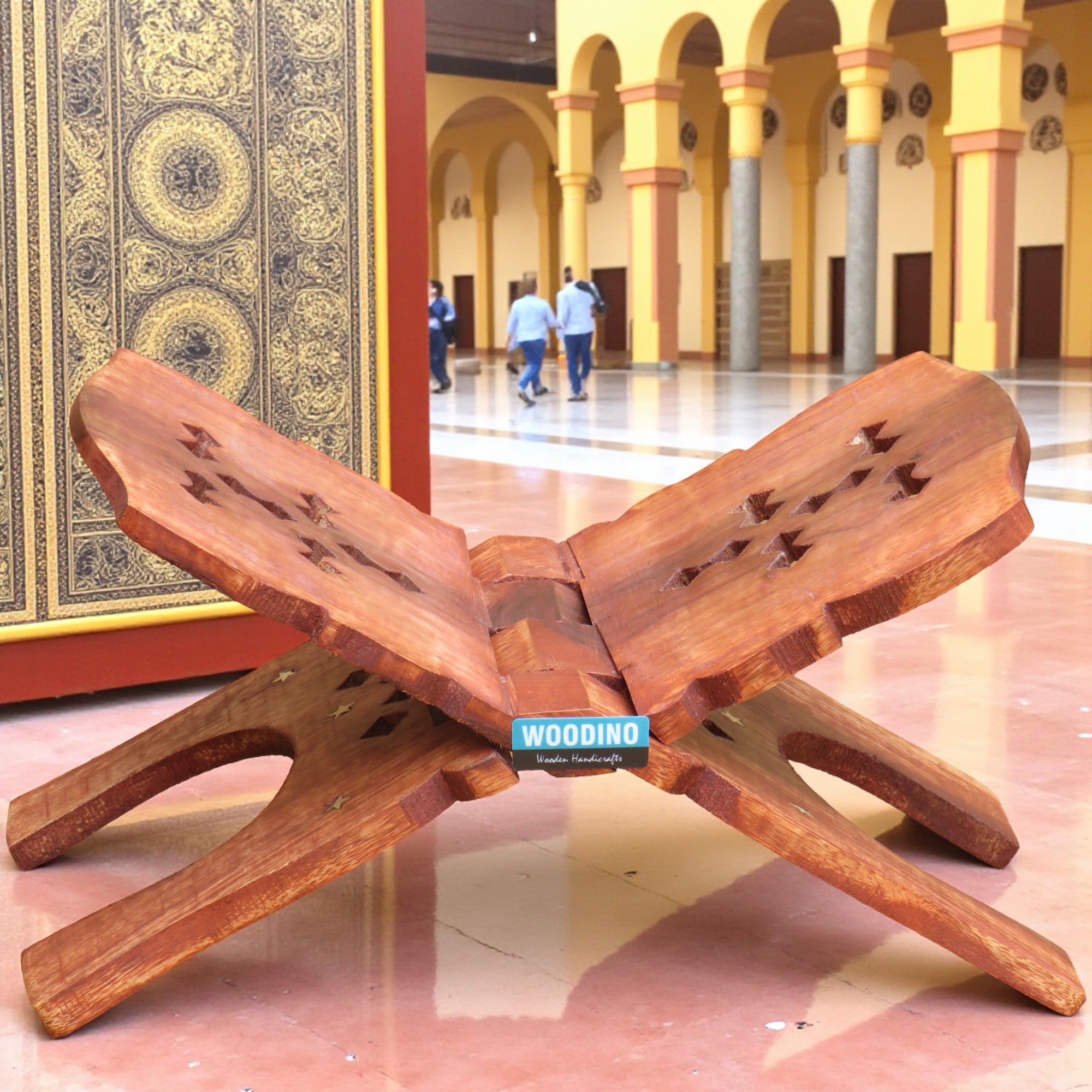 Expertly carved by skilled artisans, this handcrafted wooden rehal brings elegance and functionality to your pooja room, temple space, meditation area, study table, or spiritual décor. Its premium Sheesham wood construction ensures strength, durability, and a smooth reading angle for comfort.