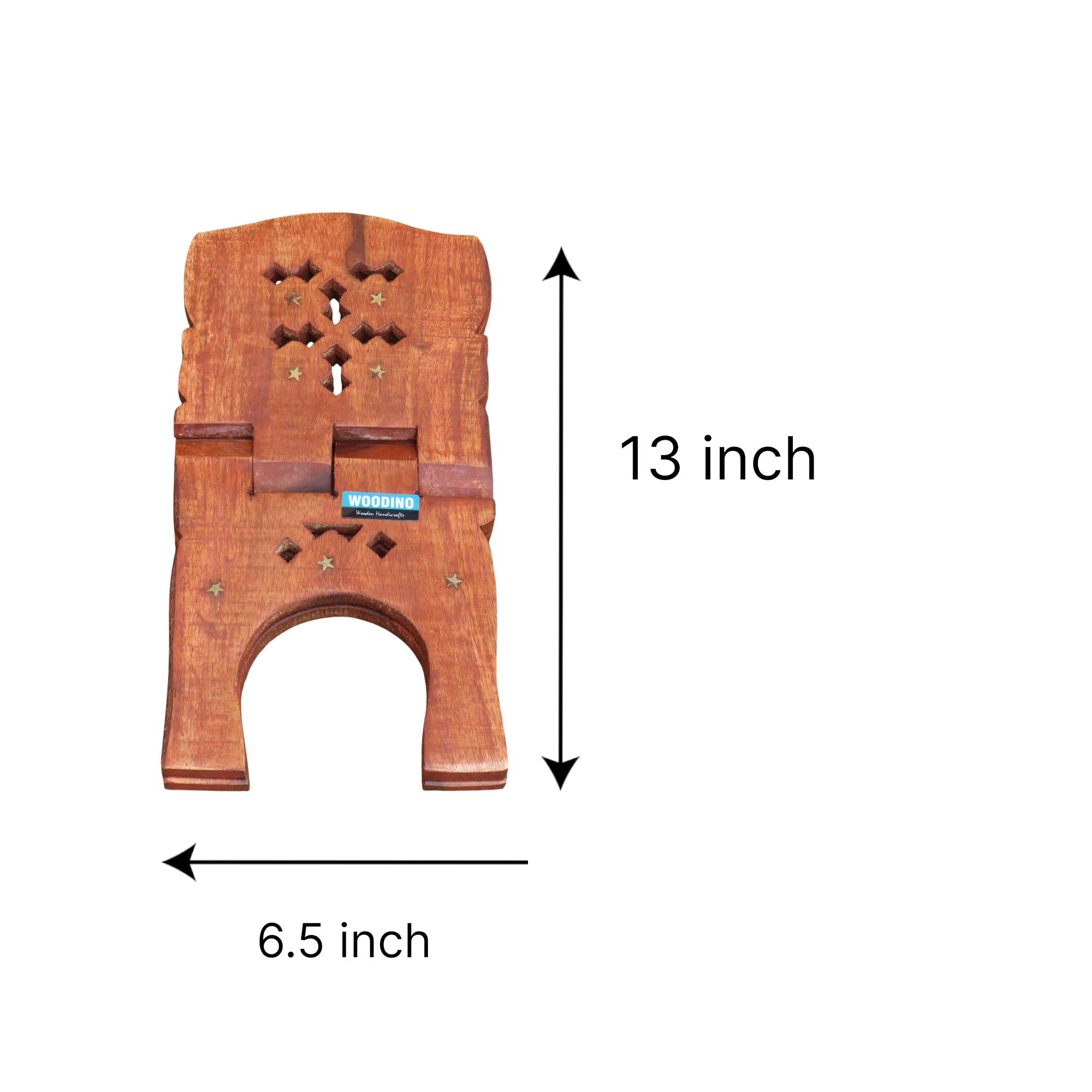 The Woodino Sheesham Wood Foldable Book Stand (Rehal) – 13 Inch is a finely handcrafted scripture holder made from high-quality Sheesham wood. This traditional foldable book stand is designed for reading and displaying sacred texts such as the Geeta, Quran, Bible, Ramayan, Guru Granth Sahib, Sanchi Sahib, and other holy books.