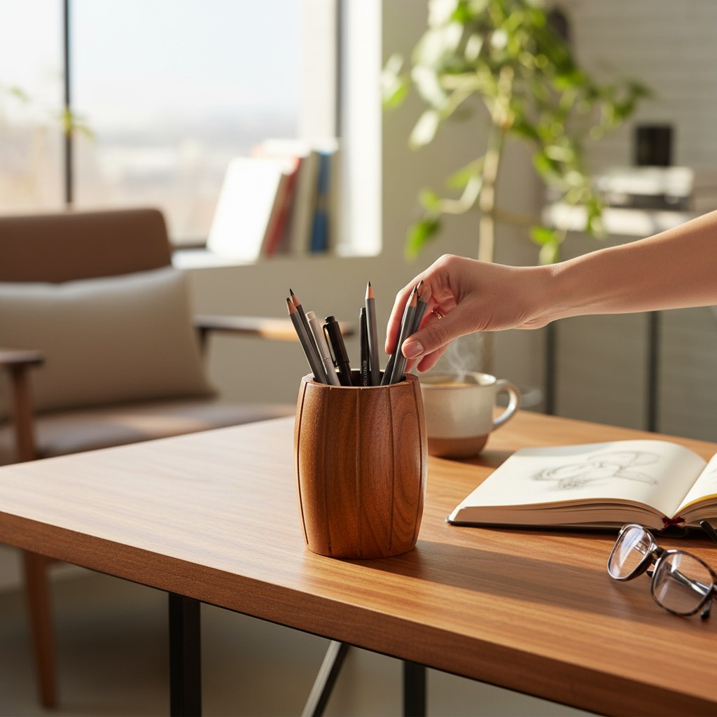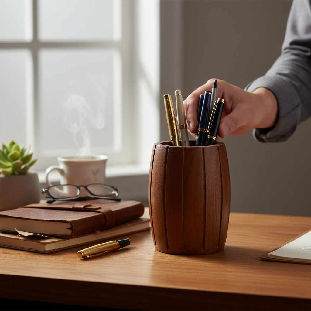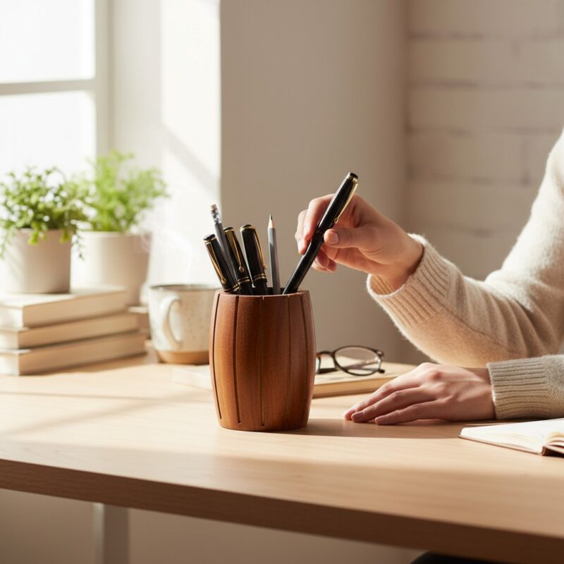 Keep your space organized with this Wooden Stationery & Pen Holder. Crafted from premium quality wood, this multipurpose holder is perfect for pens, pencils, stationery, cutlery, or kitchen utensils, combining functionality with rustic charm.
