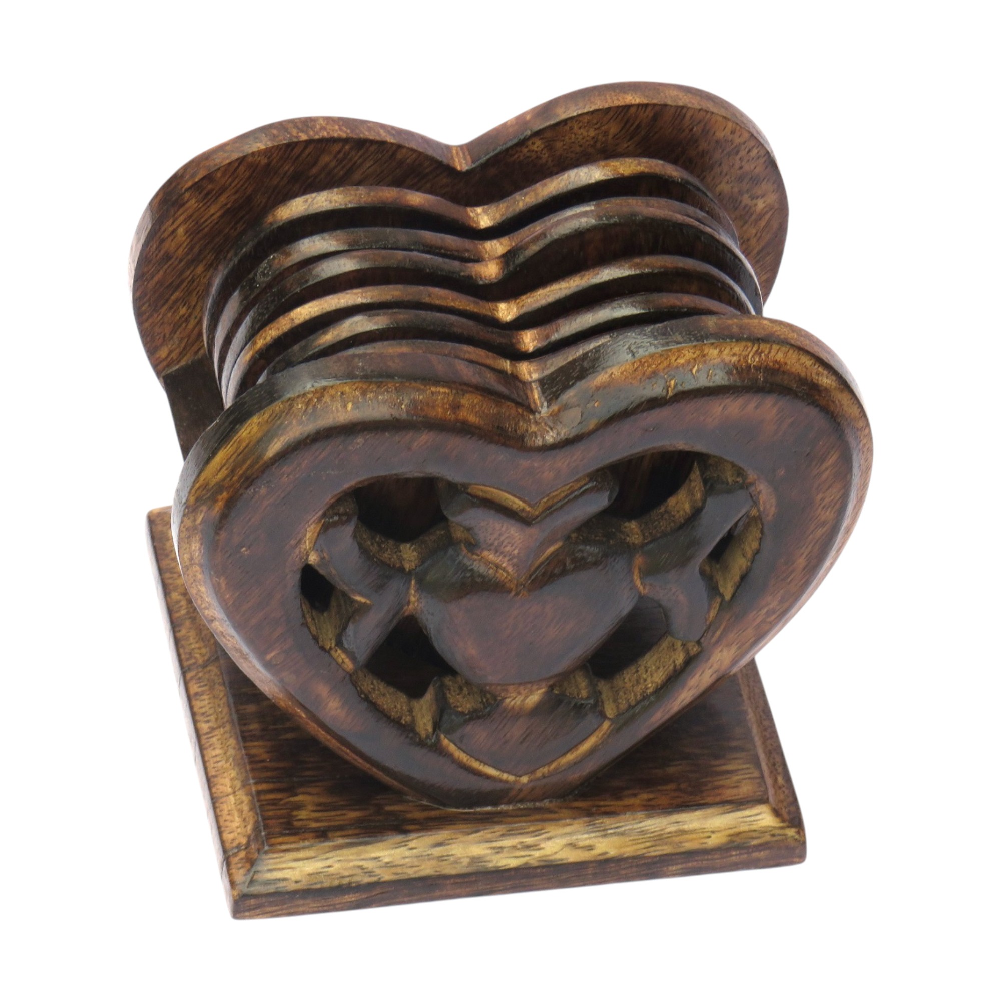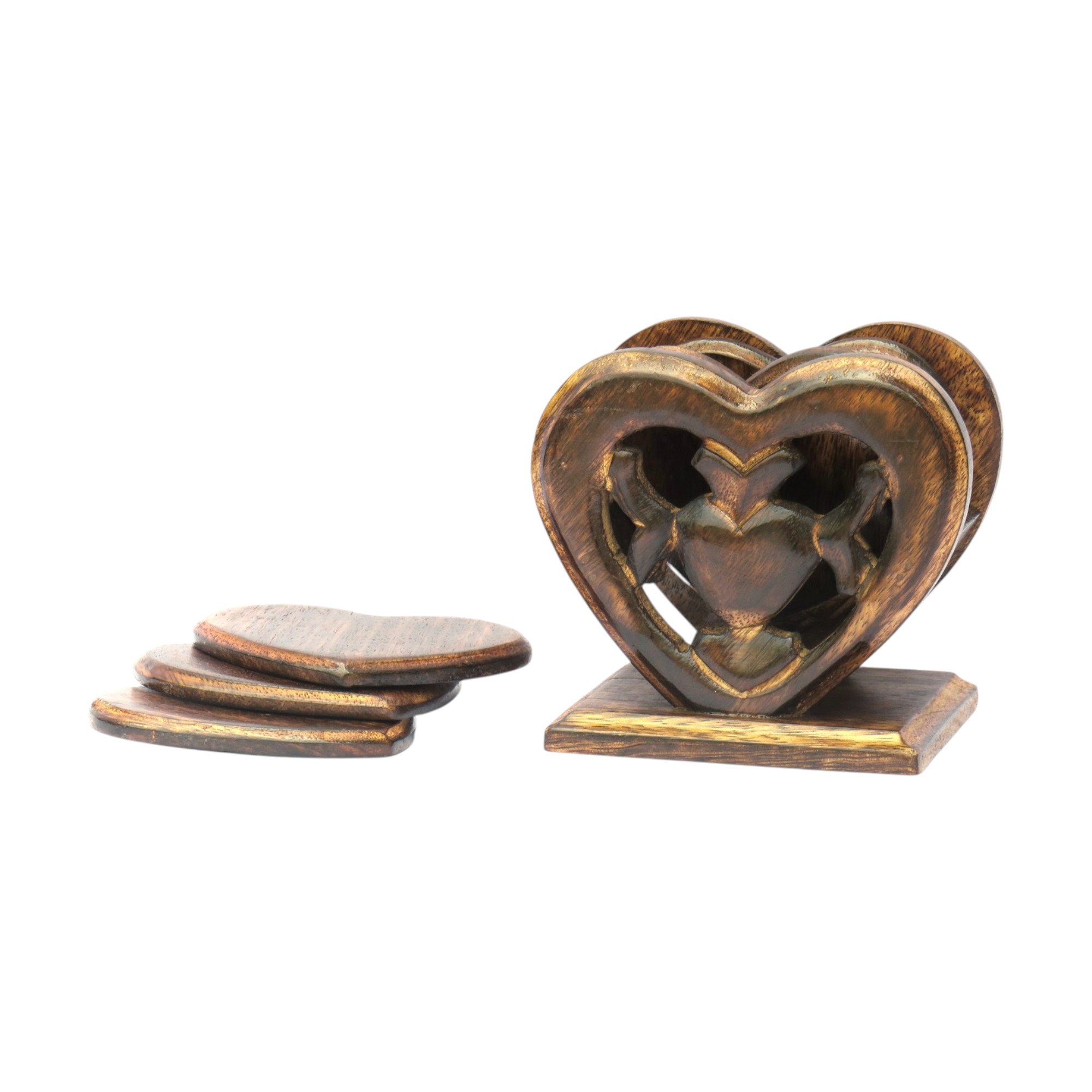 Add elegance to your home with this handcrafted wooden heart-shaped coaster set made from premium rosewood. The set includes 5 carved coasters with a matching decorative wooden stand, making it both practical and stylish.