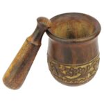 Woodino Wooden Okhli, Grinder, Kharal, Khalbatta, Spice Mortar & Pestle Wood Masher Beautiful Carving Work