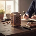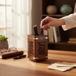 Woodino Wooden Stationery & Pen Holder – Multipurpose Cutlery Organizer for Kitchen, Dining & Office Table